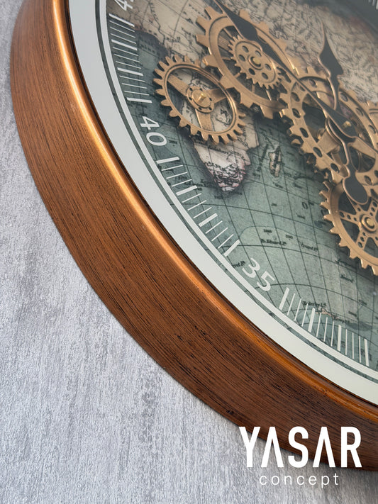 Imperio Dünya Haritalı Metal Çarklı Duvar Saati 60 Cm