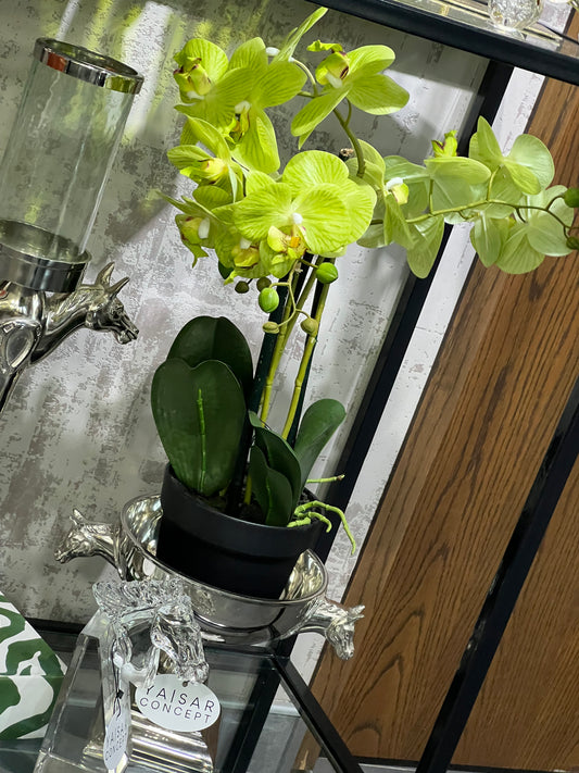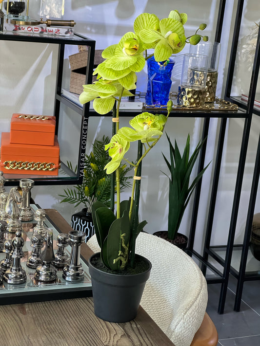 Islak Dokulu Yapay Orkide Yeşil 2 Dallı