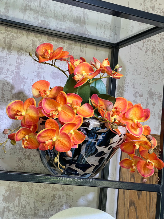 Islak Dokulu Sarkan Yapay Orkide Turuncu