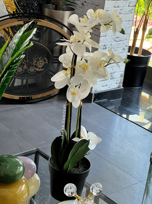 Islak Dokulu Yapay Orkide Beyaz 3 Dallı