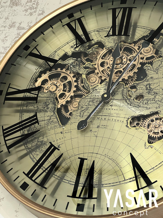 Illumap Dünya Haritalı Metal Çarklı Duvar Saati 60 Cm