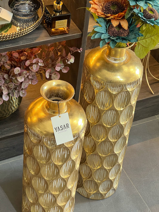 Lumetra Delikli Metal Yer Vazosu Set Gold