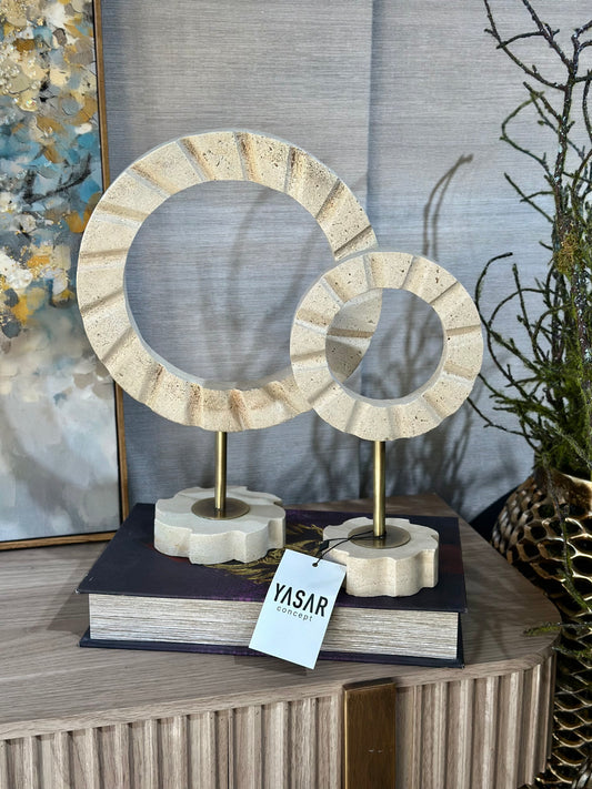 Lunorbis Dekoratif Disk Obje Set Traverten Mermer