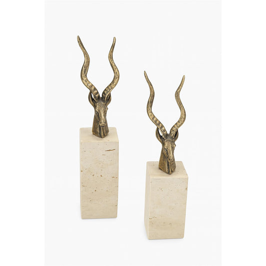 Ornedeer Dekoratif Geyik Obje Set Traverten Mermer