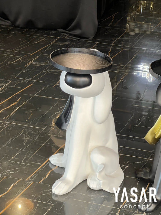 Pawdie Tepsili Dekoratif Köpek Heykeli Beyaz