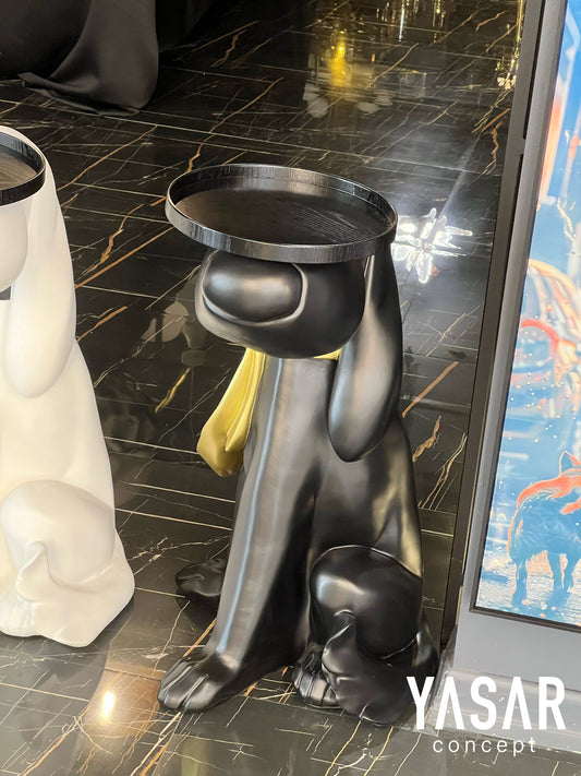Pawdie Tepsili Dekoratif Köpek Heykeli Siyah