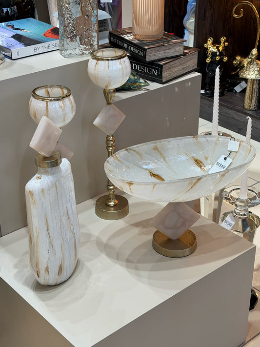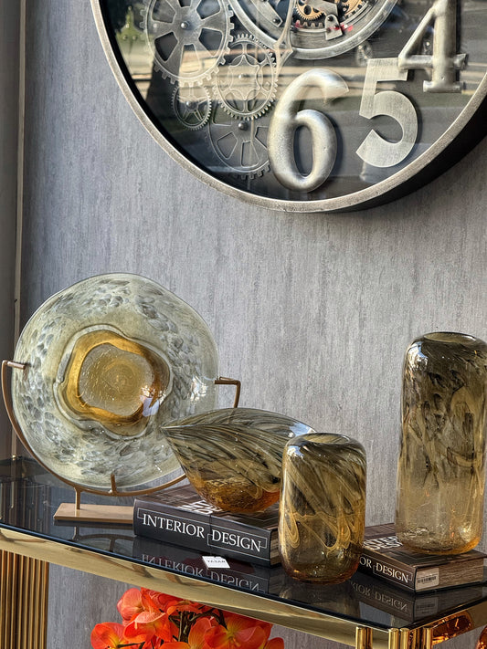 Zarif cam detaylarla tasarlanan Cam Salon Setleri koleksiyonumuz; salon dekorasyonu için şık cam mumluklar, dekoratif cam disk objeler, modern cam kaseler, vazo setleri ve kapaklı cam kutularla göz alıcı bir bütünlük sunar. Işığı yansıtan yapısı sayesinde mekânlara ferahlık, şıklık ve modern bir atmosfer katar.