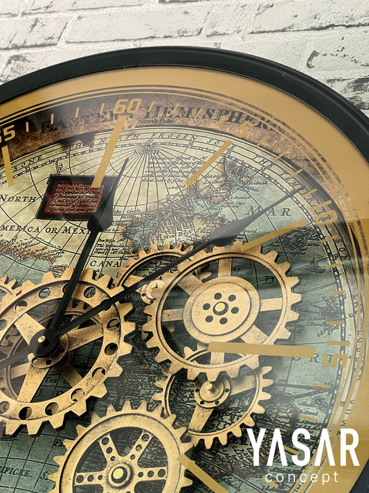 Sphere Dünya Haritalı Metal Çarklı Duvar Saati