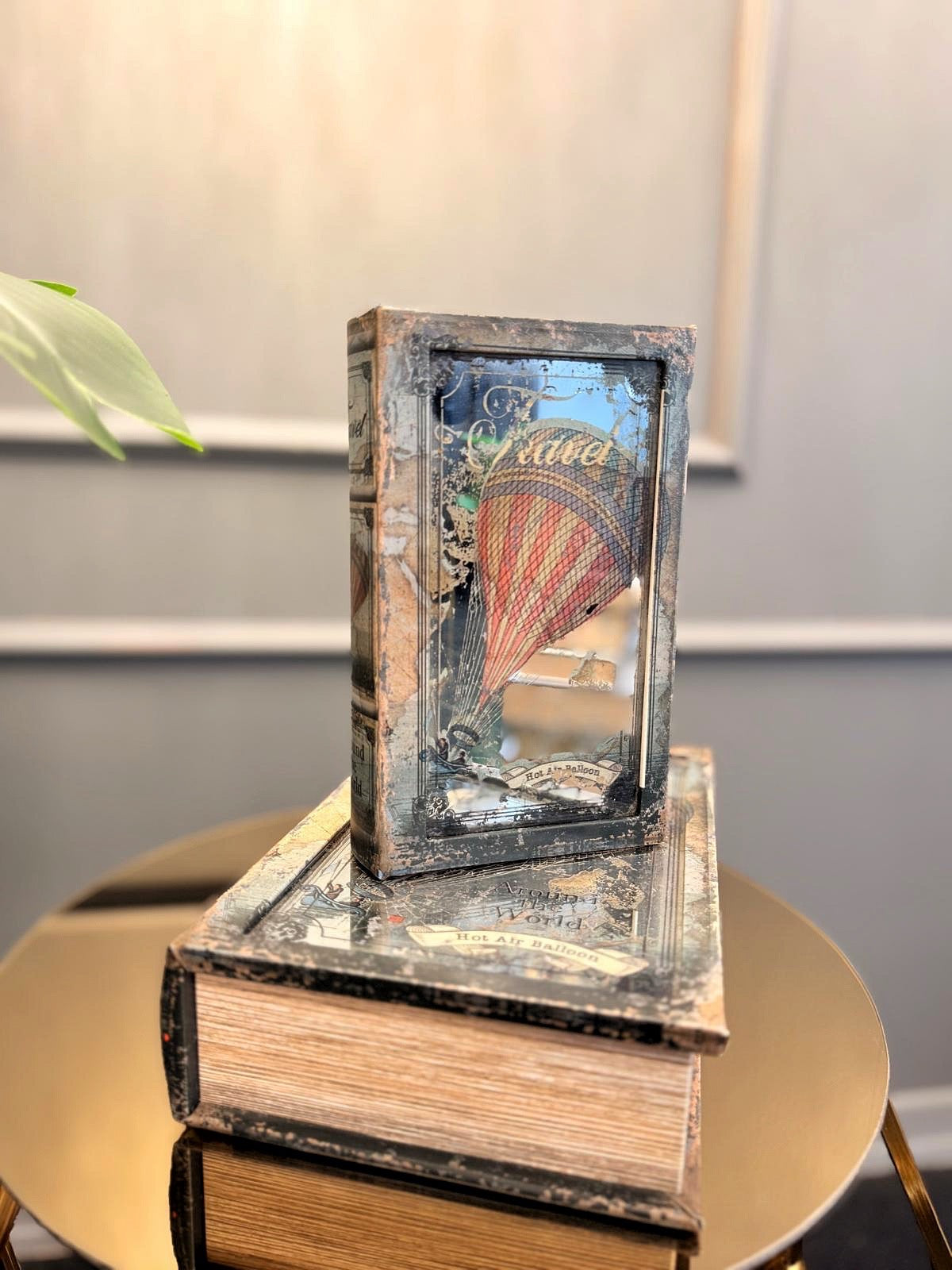 Malzeme: Suni Deri, Cam, Ahşap ve Kadife Kaplı İç Yüzey