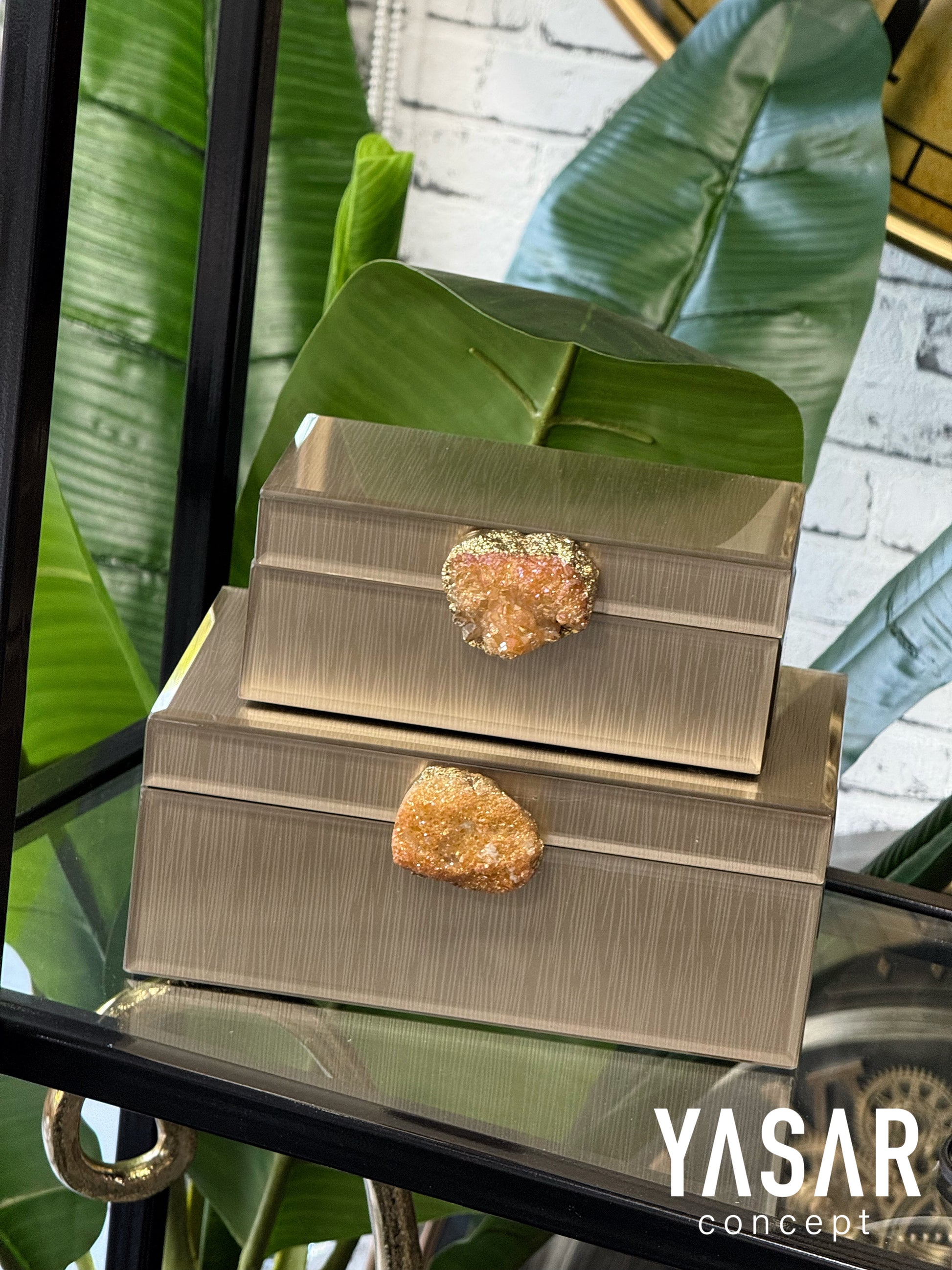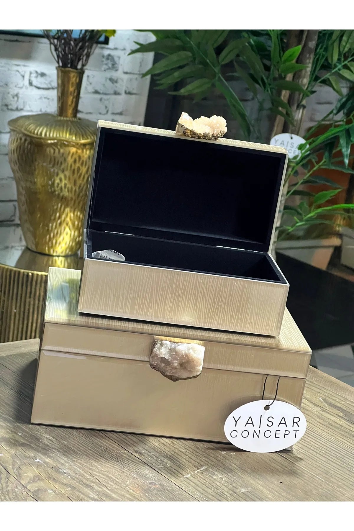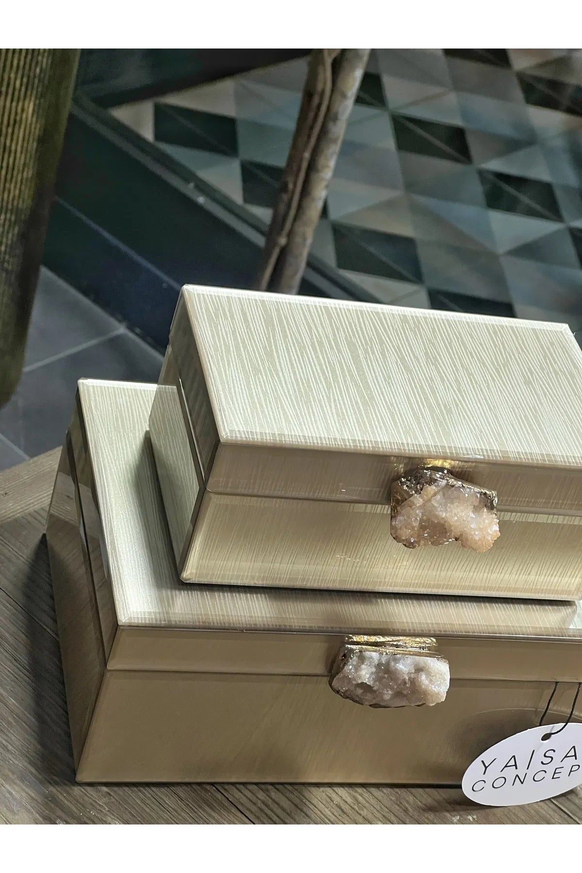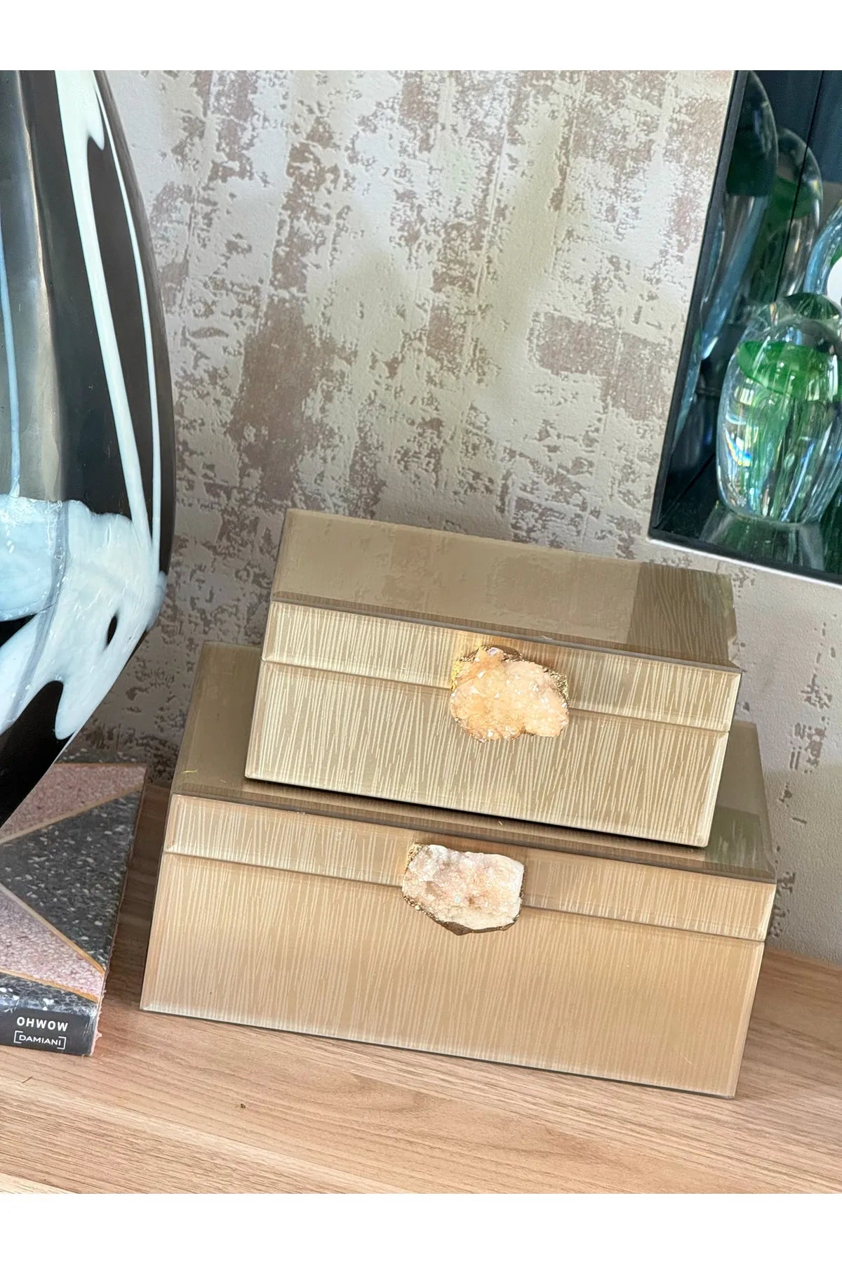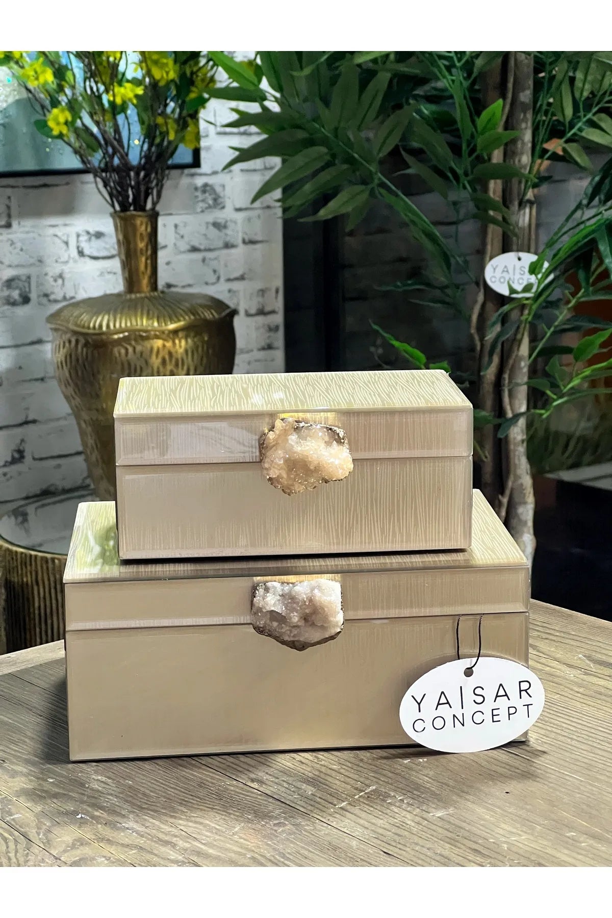 2'Li Glisca Dekoratif Kutu Doğal Taşlı Kırçıllı Krem