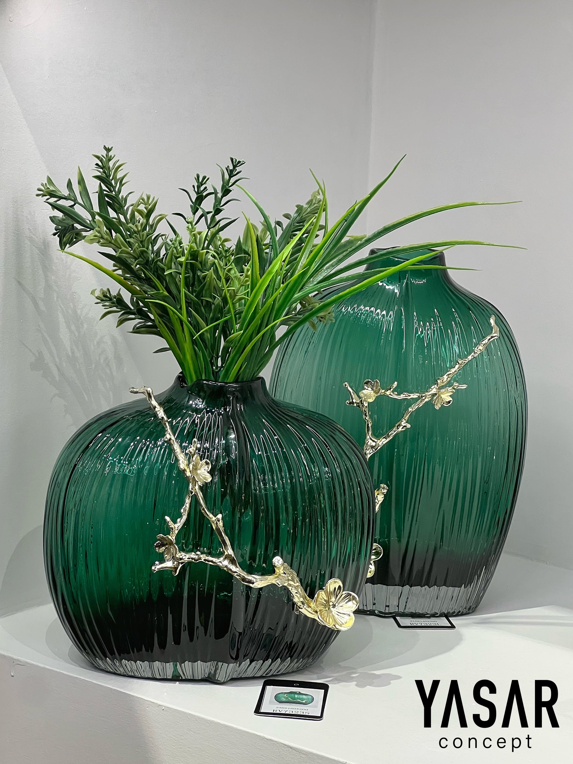 2'Li Mirure Yeşil Cam Vazo