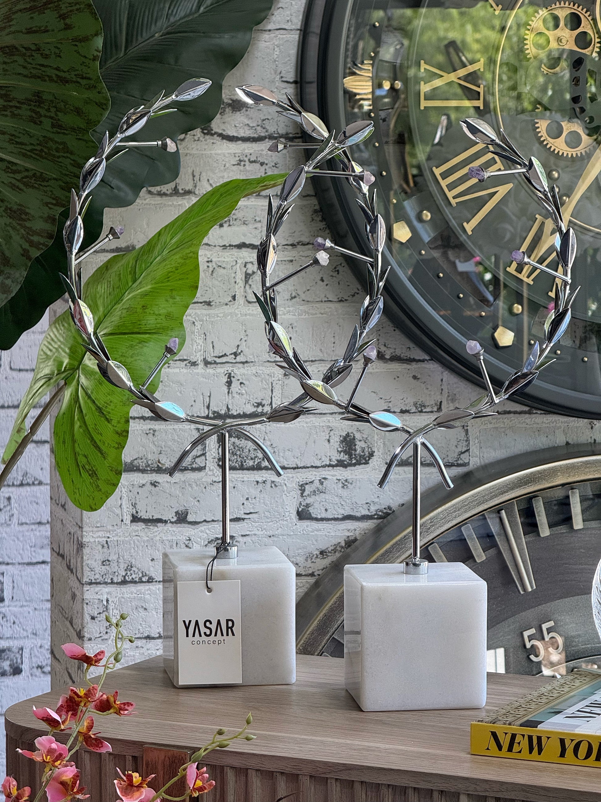 2'Li Perry Pirinç Doğal Taş Detaylı Obje Gümüş