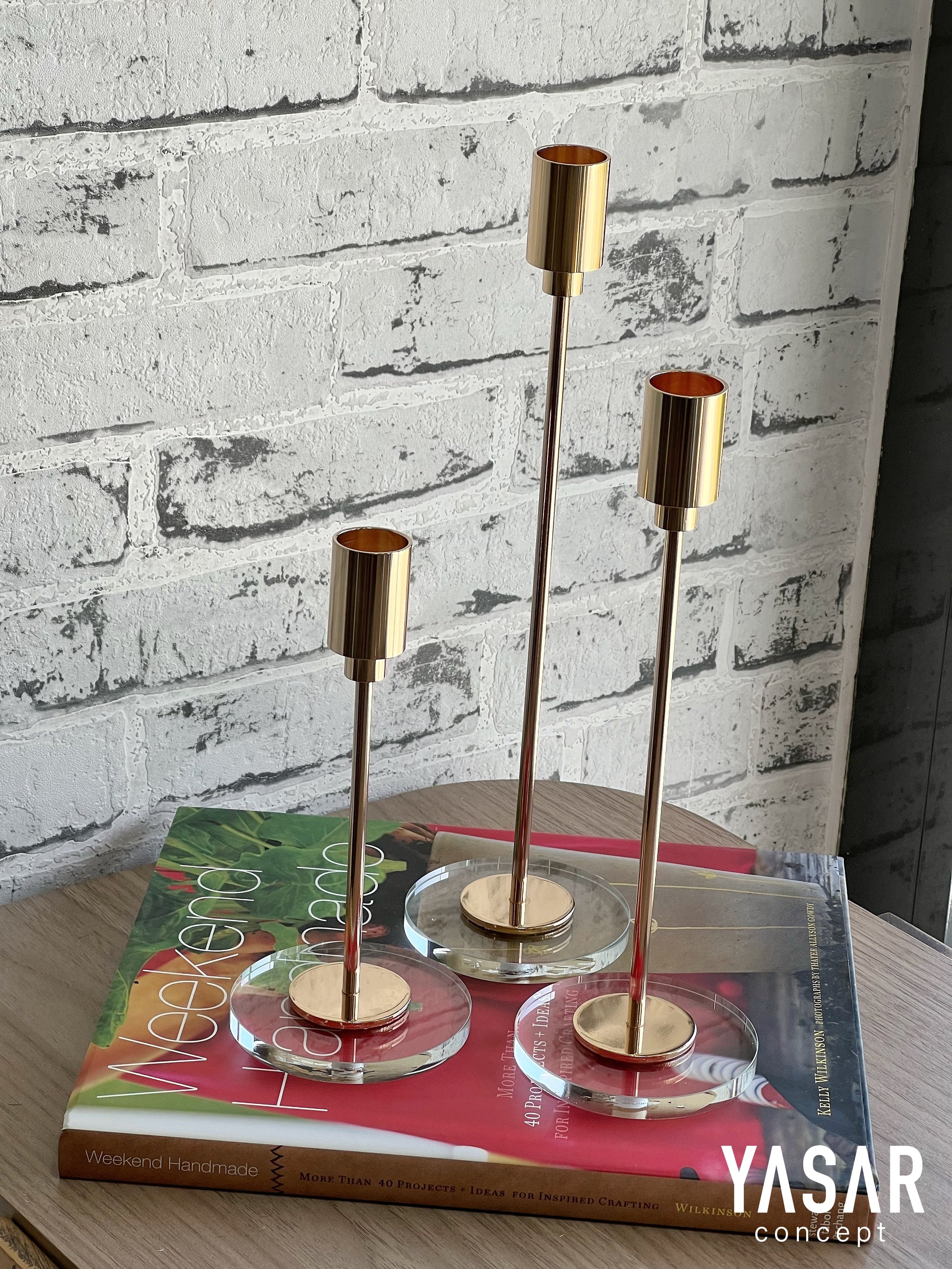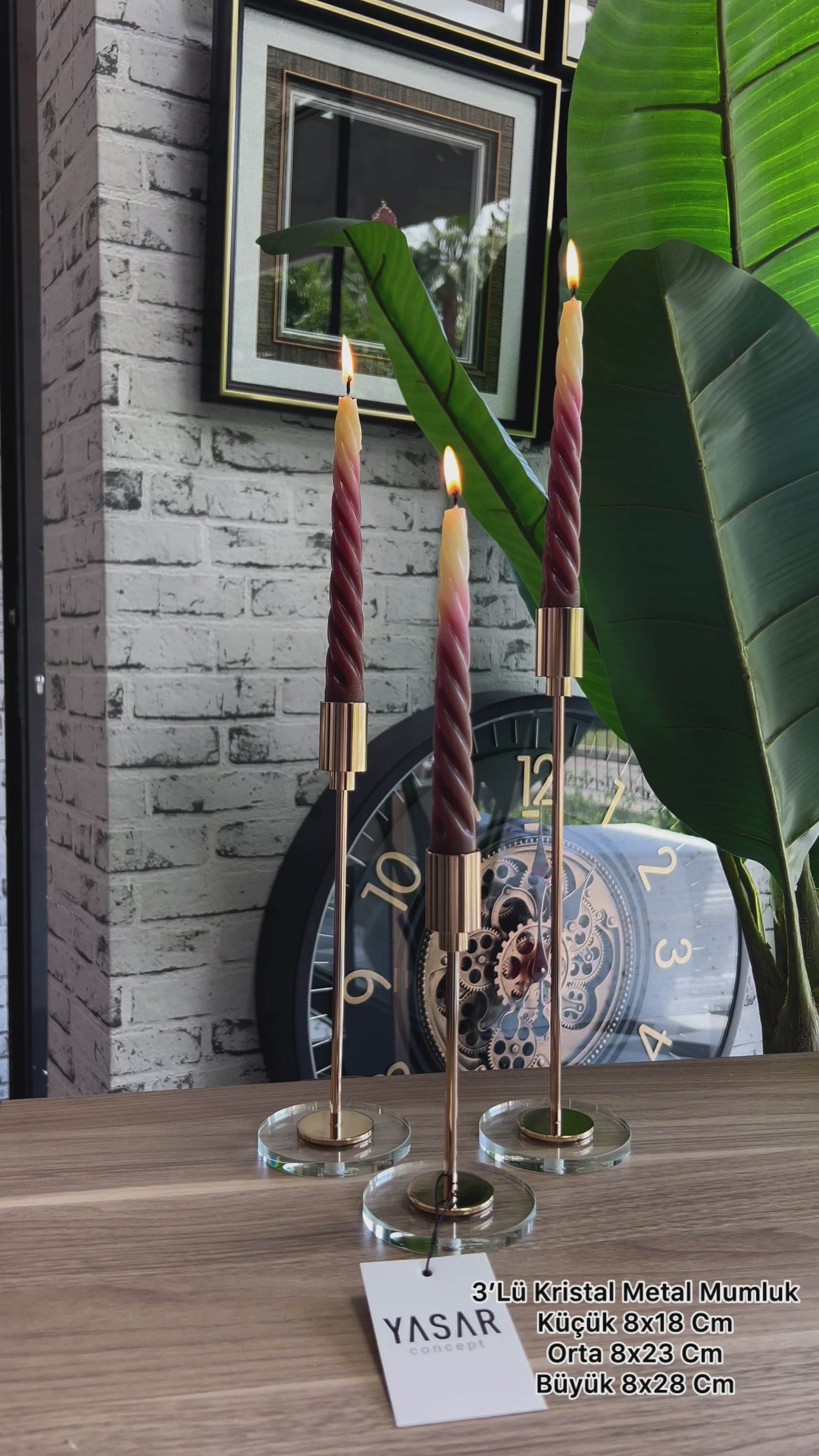 Kristalin ışıltısı ve metalin güçlü duruşu, bu mumluğu yalnızca bir aydınlatma aracı değil, aynı zamanda estetik bir dekorasyon parçası haline getirir. Üçlü tasarımı sayesinde simetrik ve dengeli bir görünüm sunan bu ürün, klasik ve modern stillerle kolayca uyum sağlar.