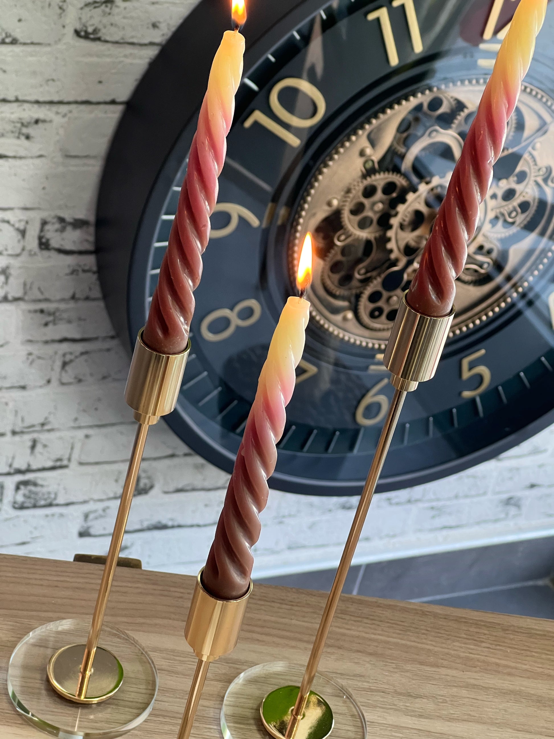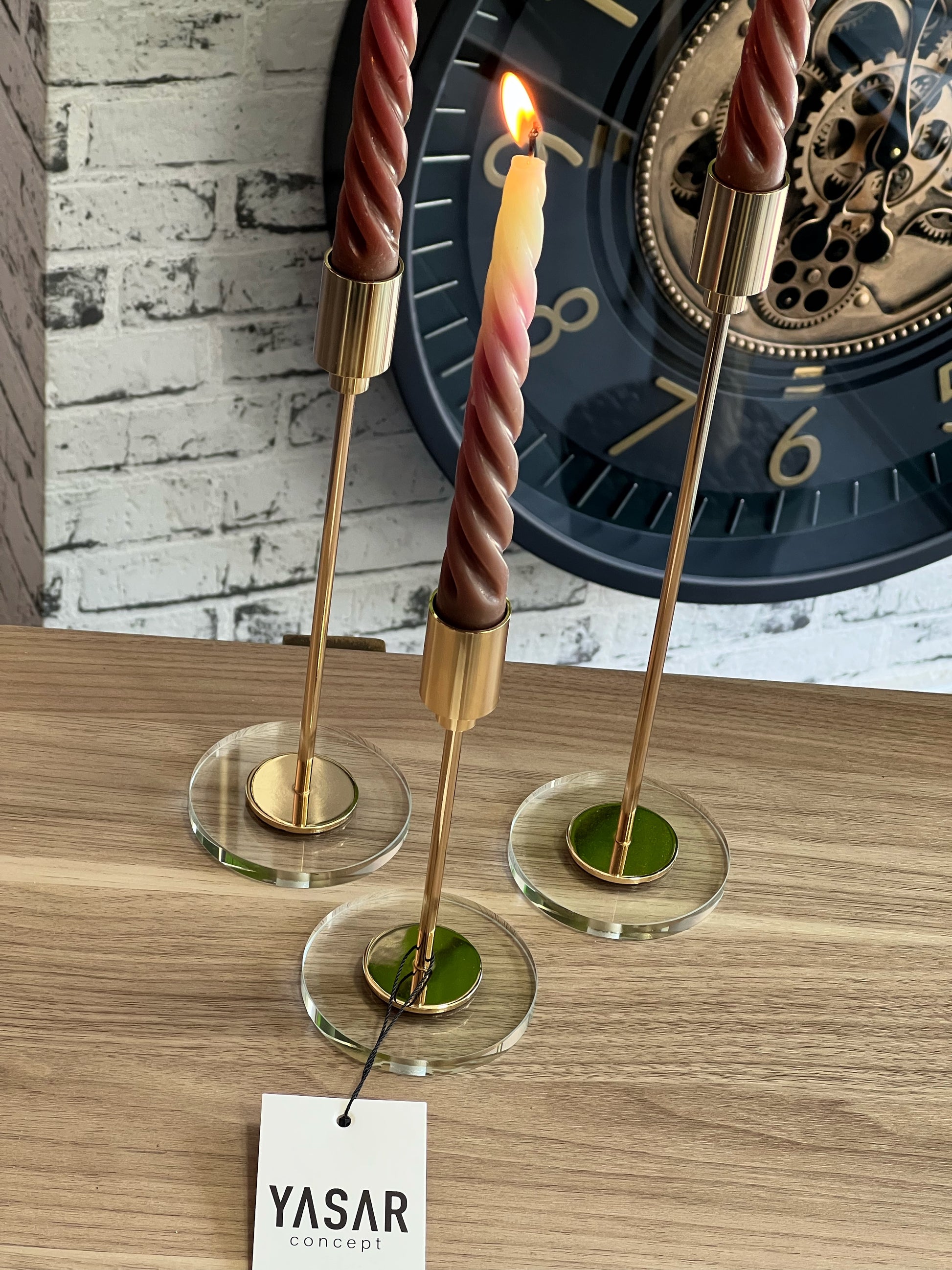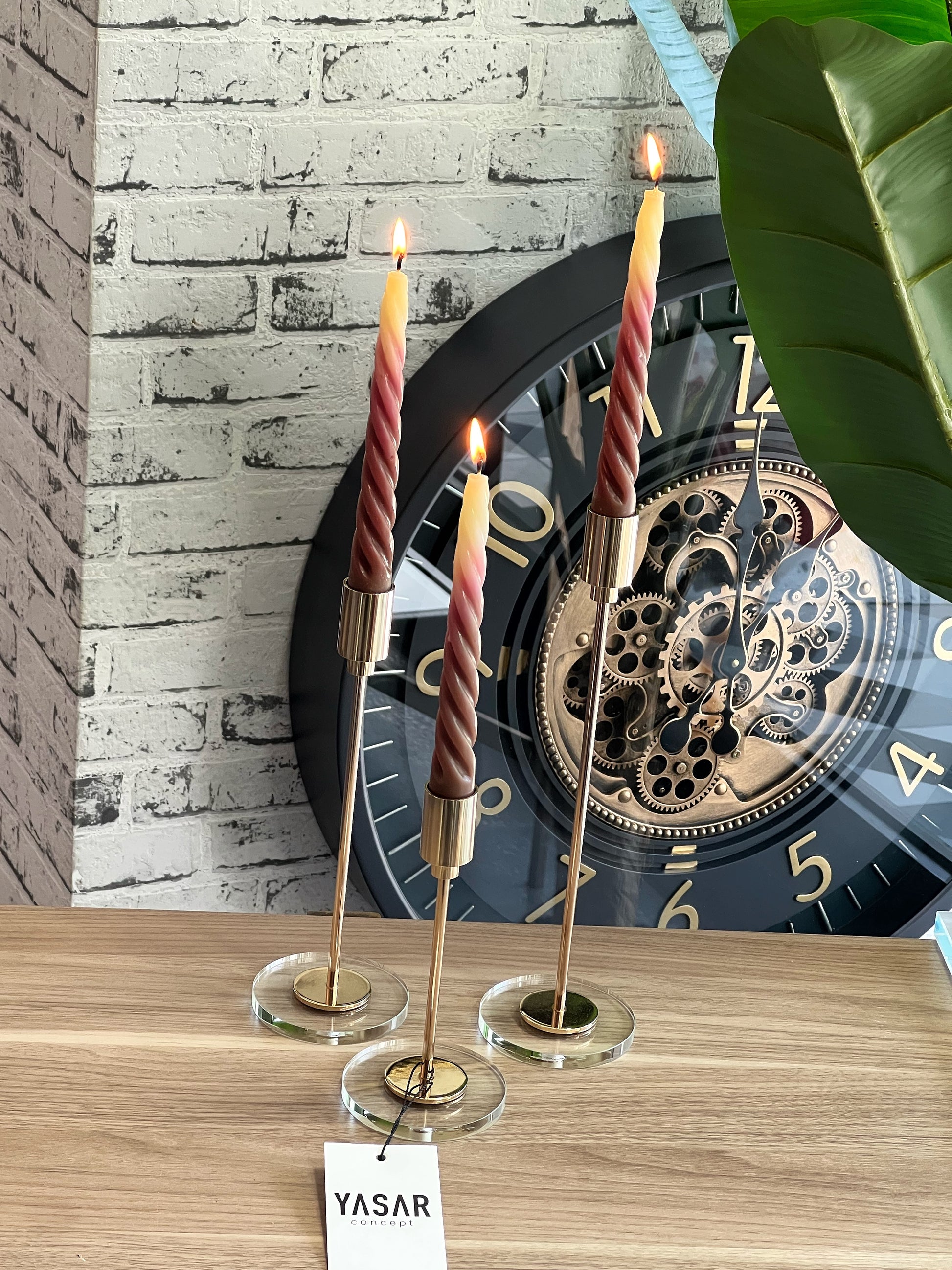 3'lü Glimmora Mumluk, kristal kaide ve metal gövdesinin mükemmel birleşimiyle, her alanda sofistike bir atmosfer yaratır. Zarif ve modern tasarımı, mumların sıcak ışığını şık bir şekilde yansıtarak, oturma odasından yemek masasına kadar her köşenizde zarif bir ambians oluşturur.
