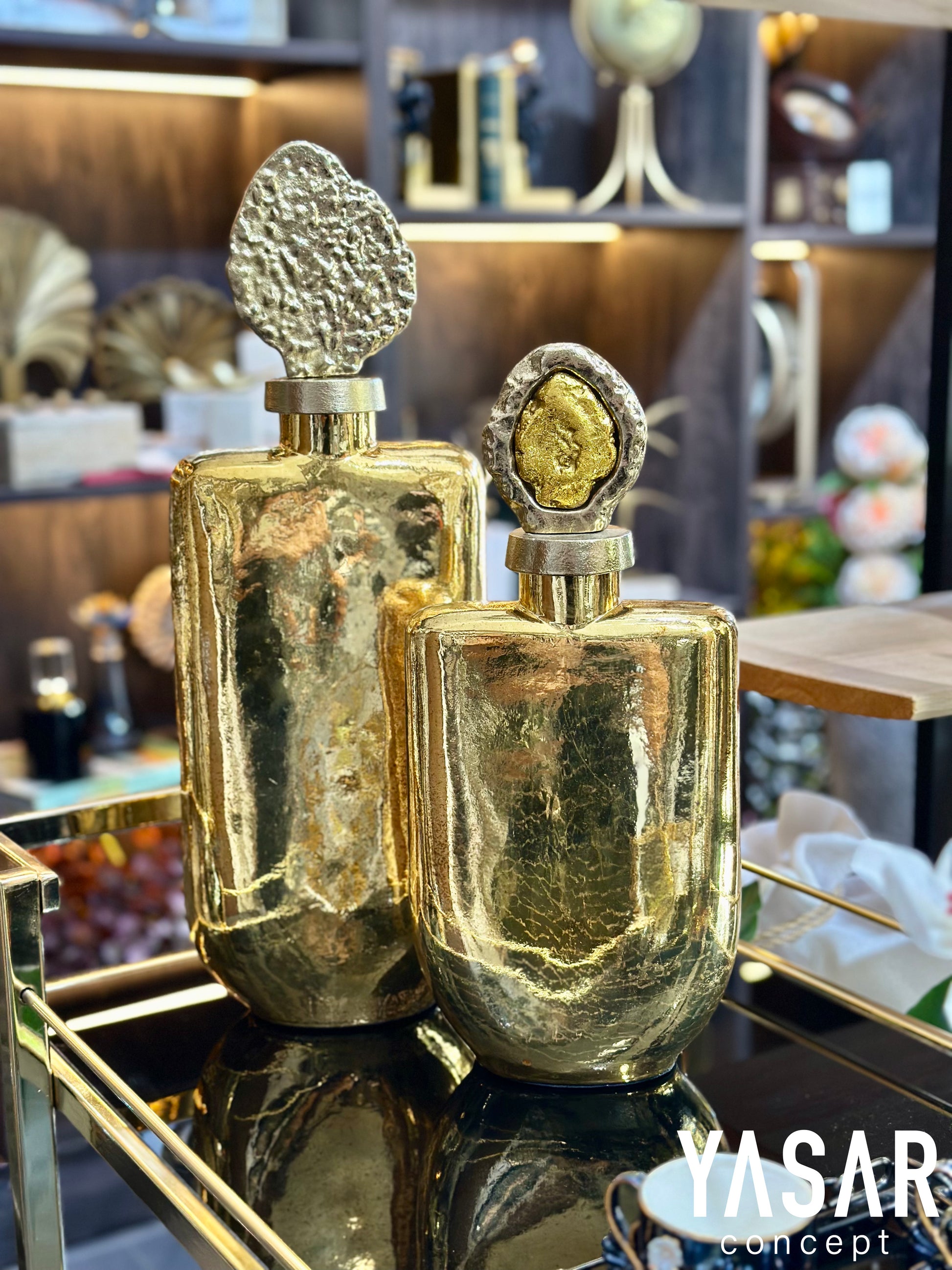Antik Gold Kapaklı Cam Vazo Set