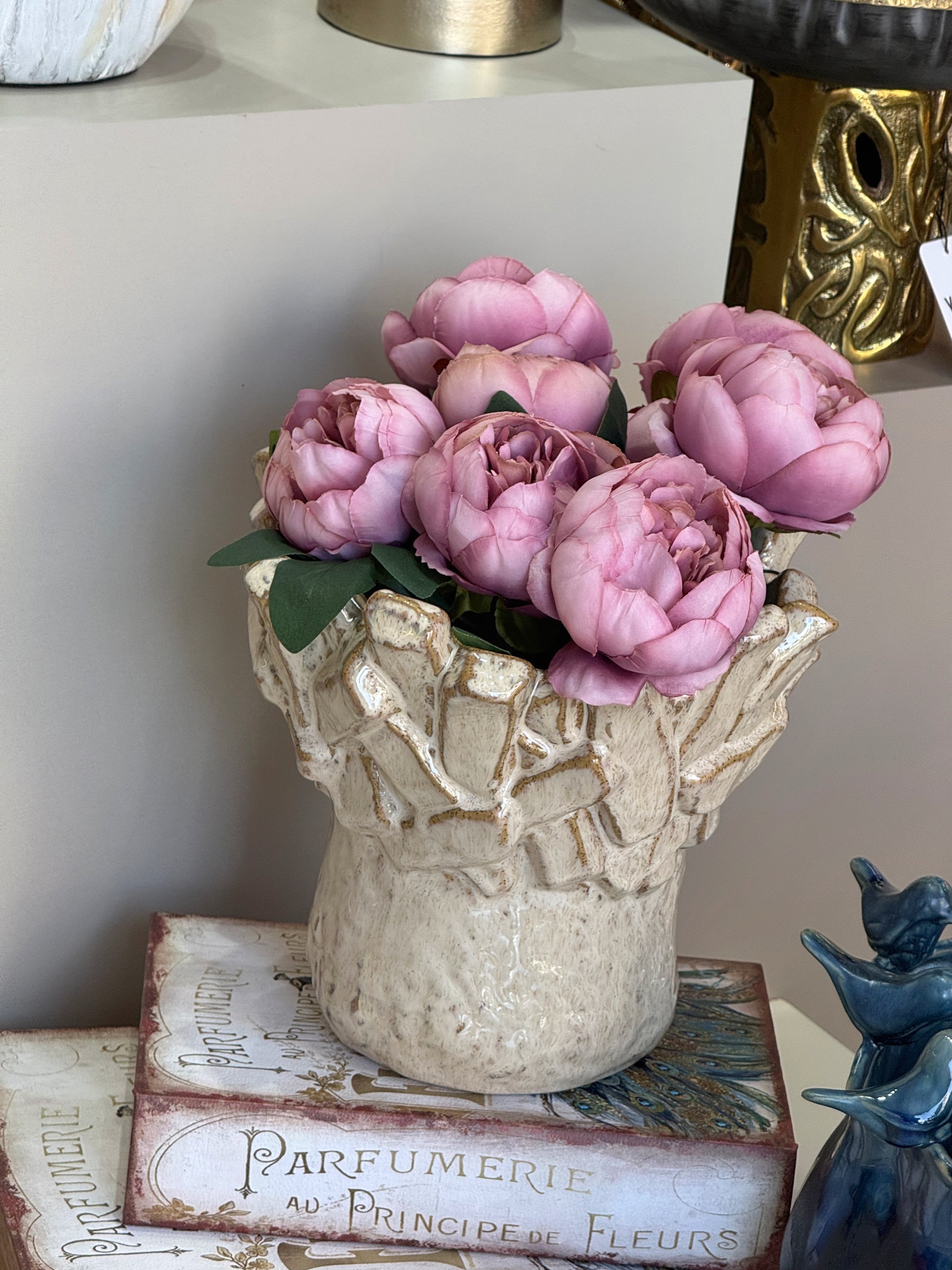 Atelier Seramik Kabartmalı Vazo Krem 22x25 Cm