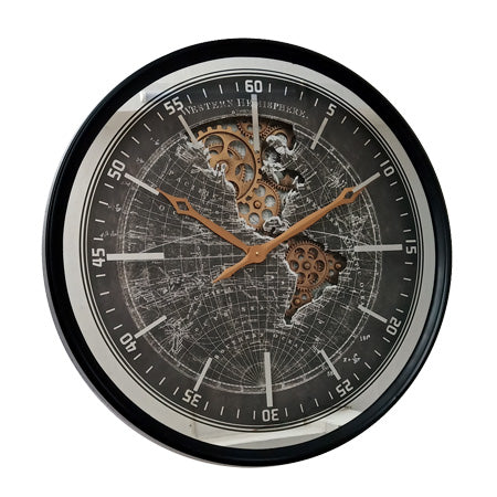 Atlasgrano Dünya Haritalı Metal Çarklı Duvar Saati 60 Cm