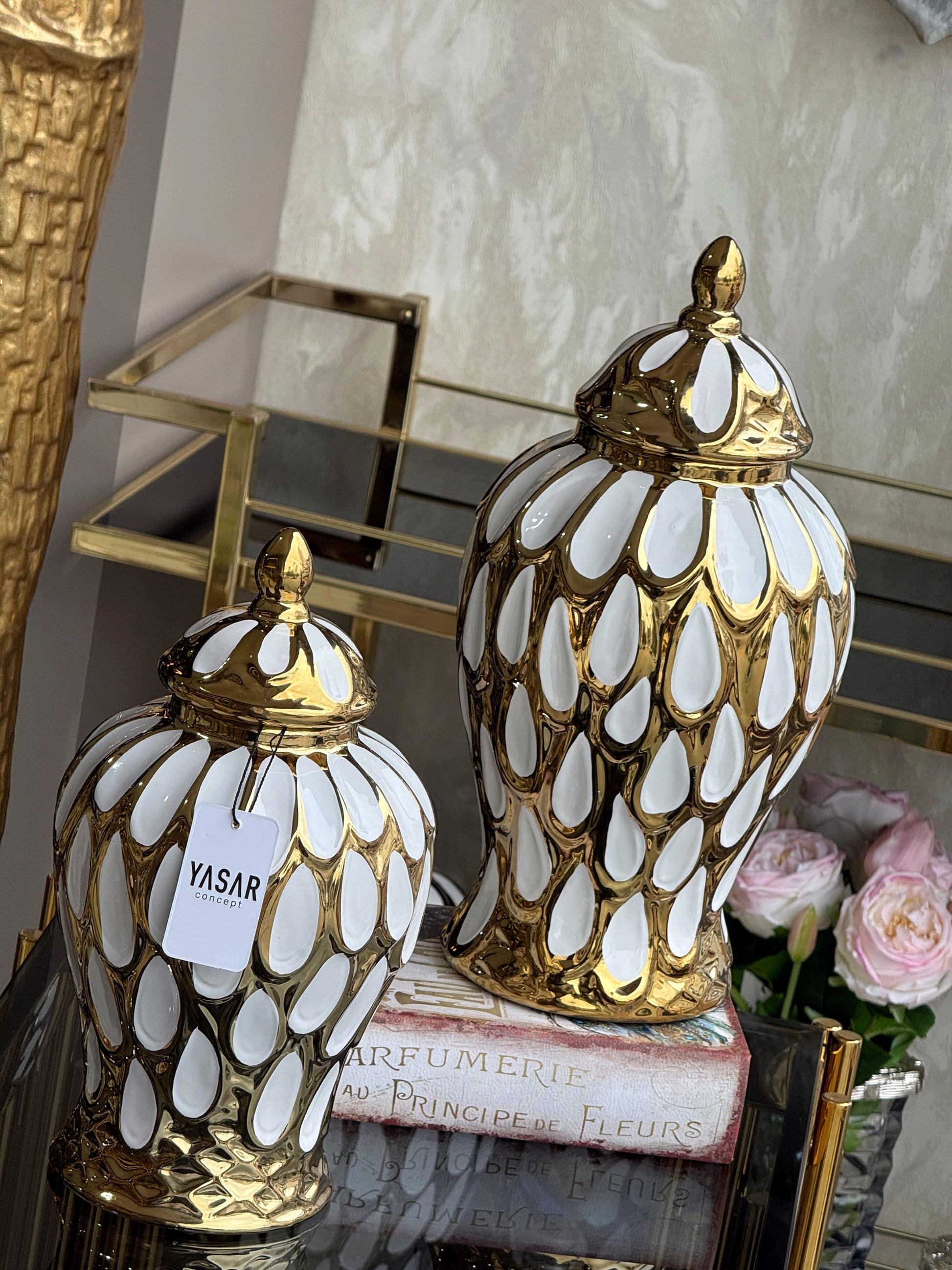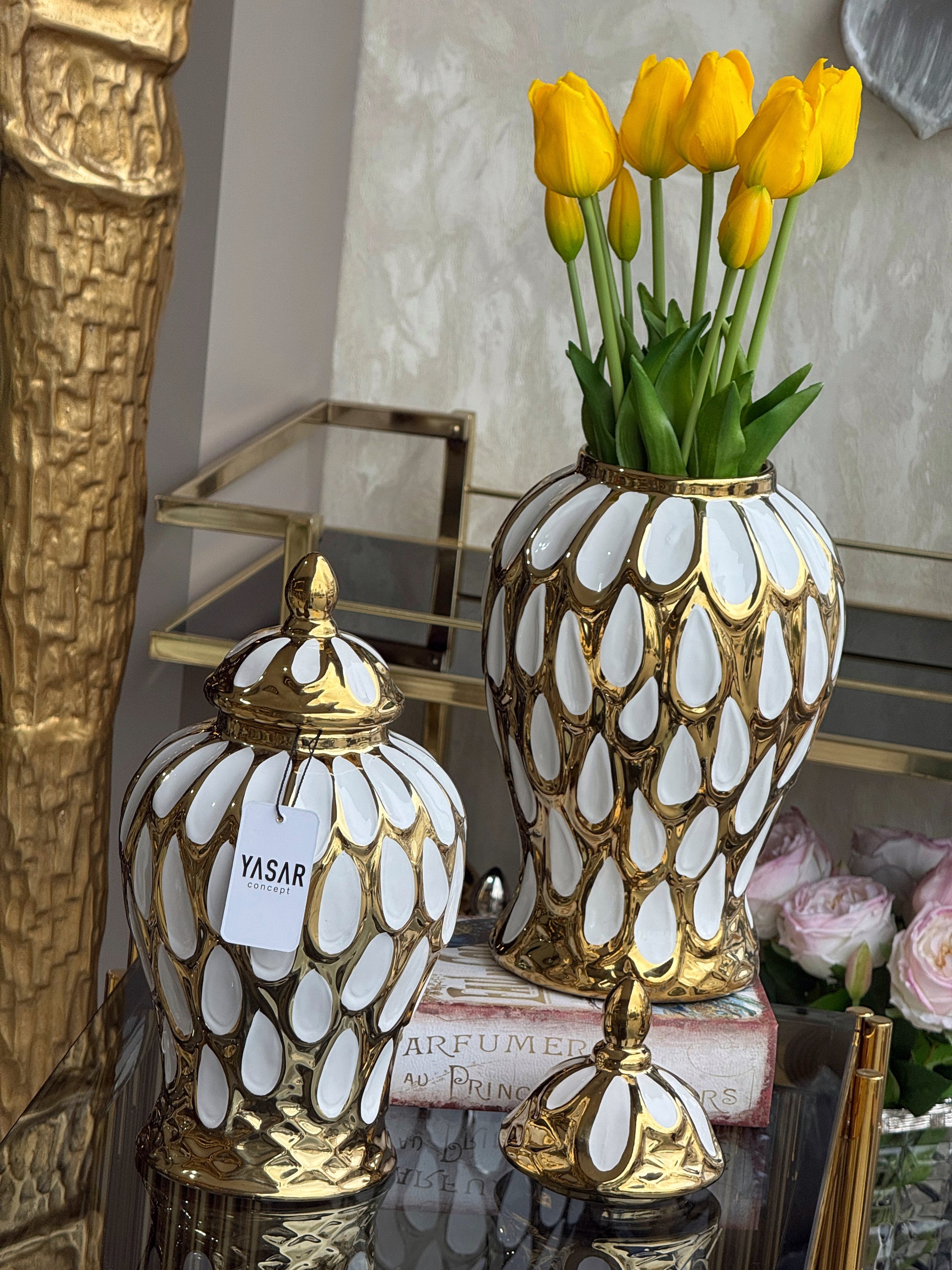 Aurum Seramik Küp Kapaklı Vazo Set Gold