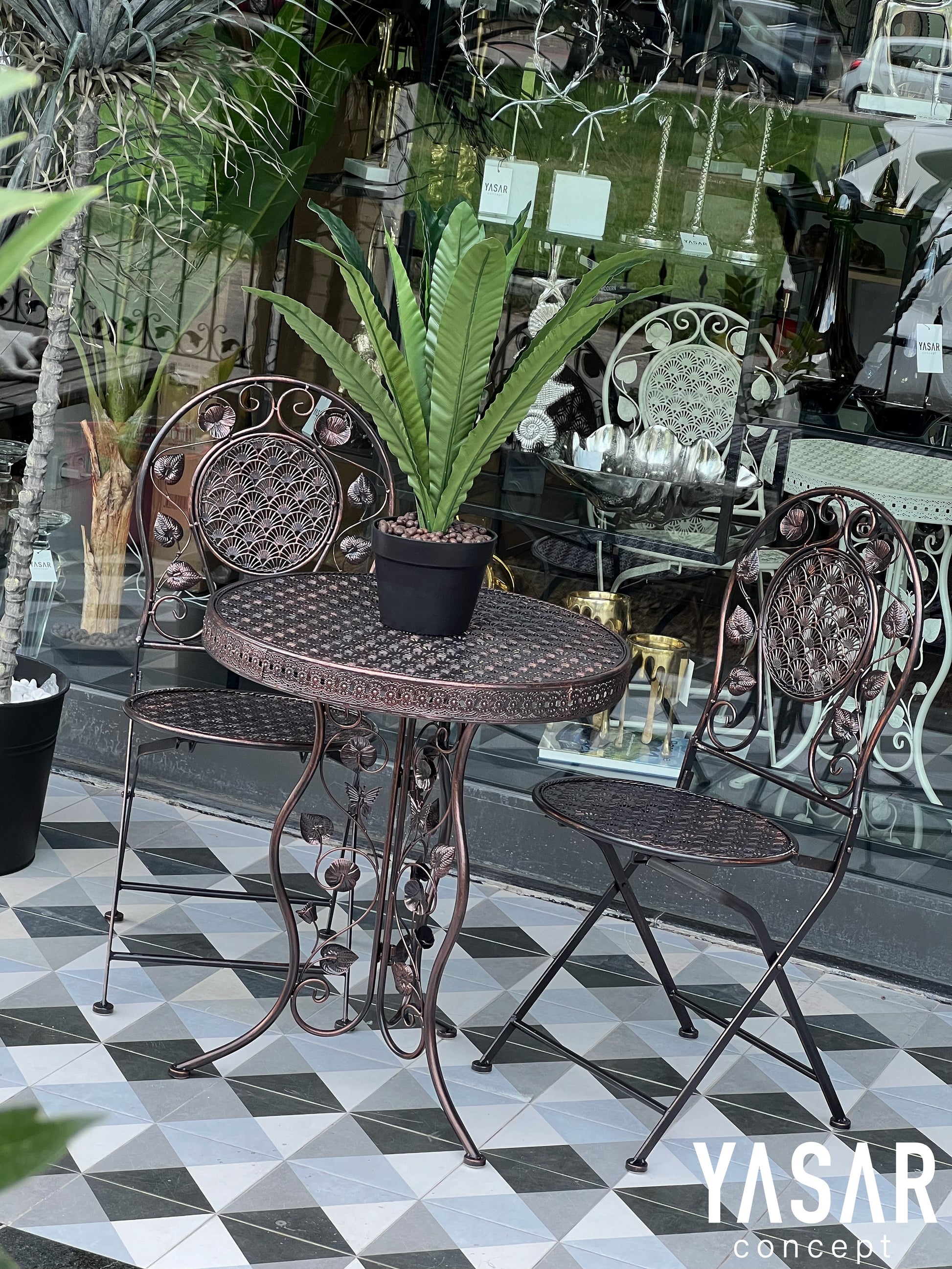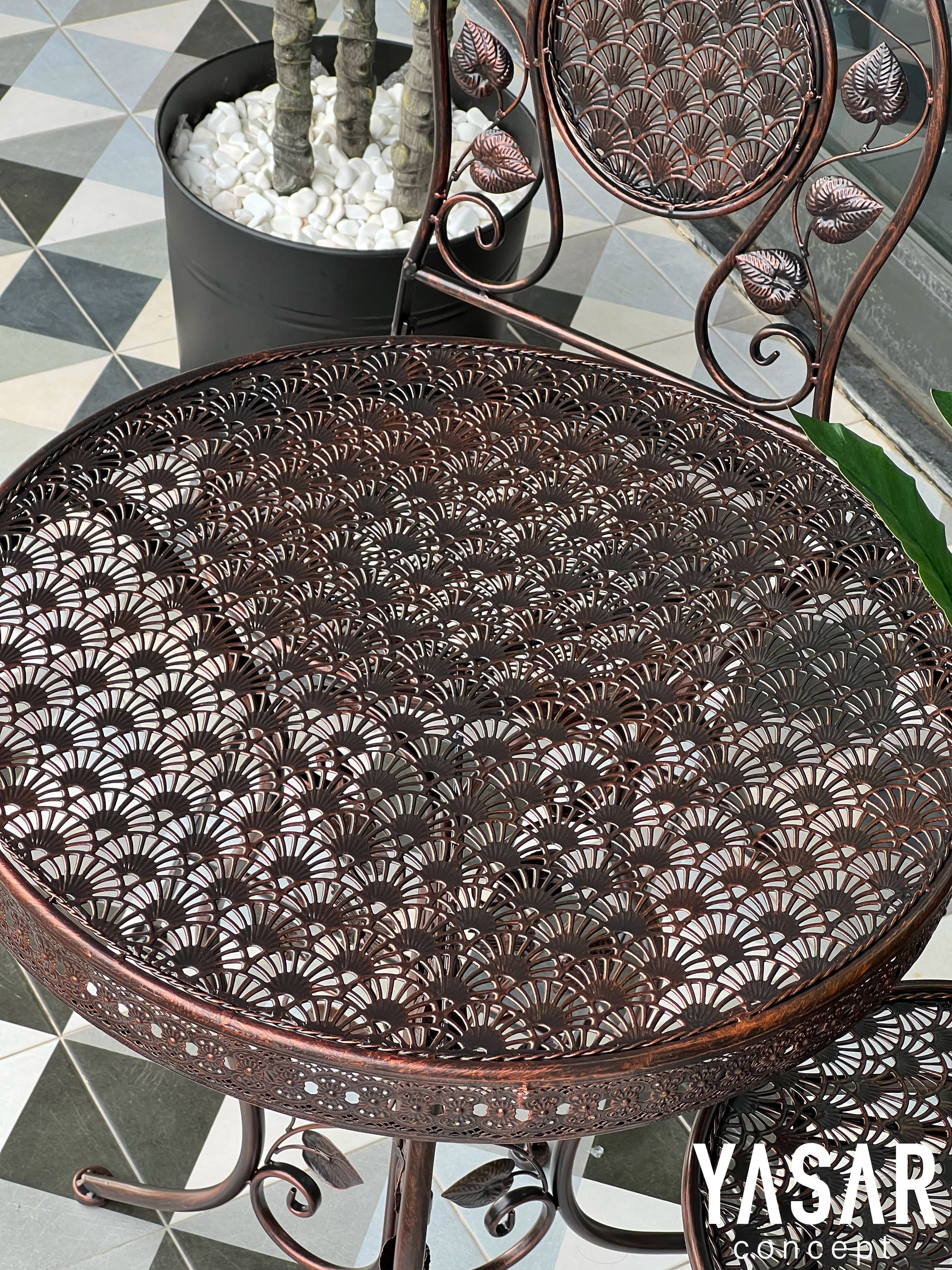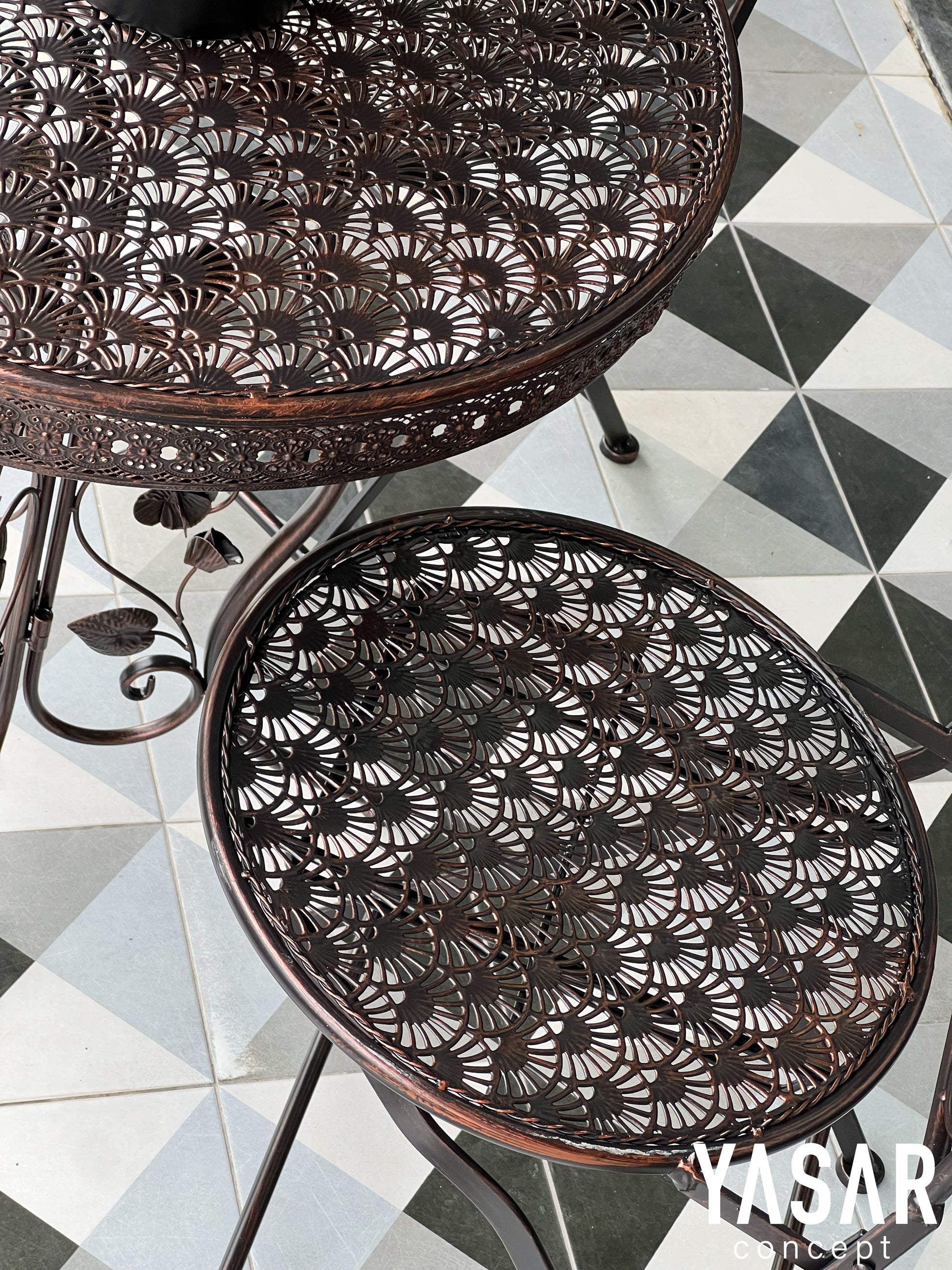 Belforgia Ferforje Masa Sandalye Takımı Siyah Bakır