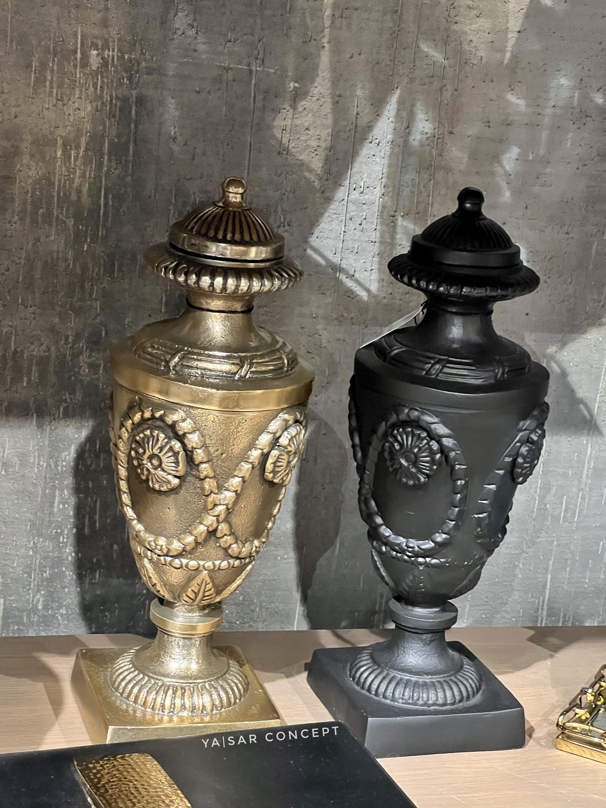 Bu vazo, modern ve klasik stilleri bir araya getirerek her türlü dekorasyona uyum sağlar. Metal malzemenin sağlamlığı ve kabartmaların estetik dokunuşu, bu vazoyu hem fonksiyonel hem de dekoratif bir parça haline getirir. Konsol, masa veya sehpa üzerinde şık bir şekilde sergilenebilir, evinize zarafet ve şıklık katar. Dekorasyonunda sofistike detaylara yer vermek isteyenler için mükemmel bir seçim olan bu vazo, her ortamda göz alıcı bir atmosfer yaratacaktır.