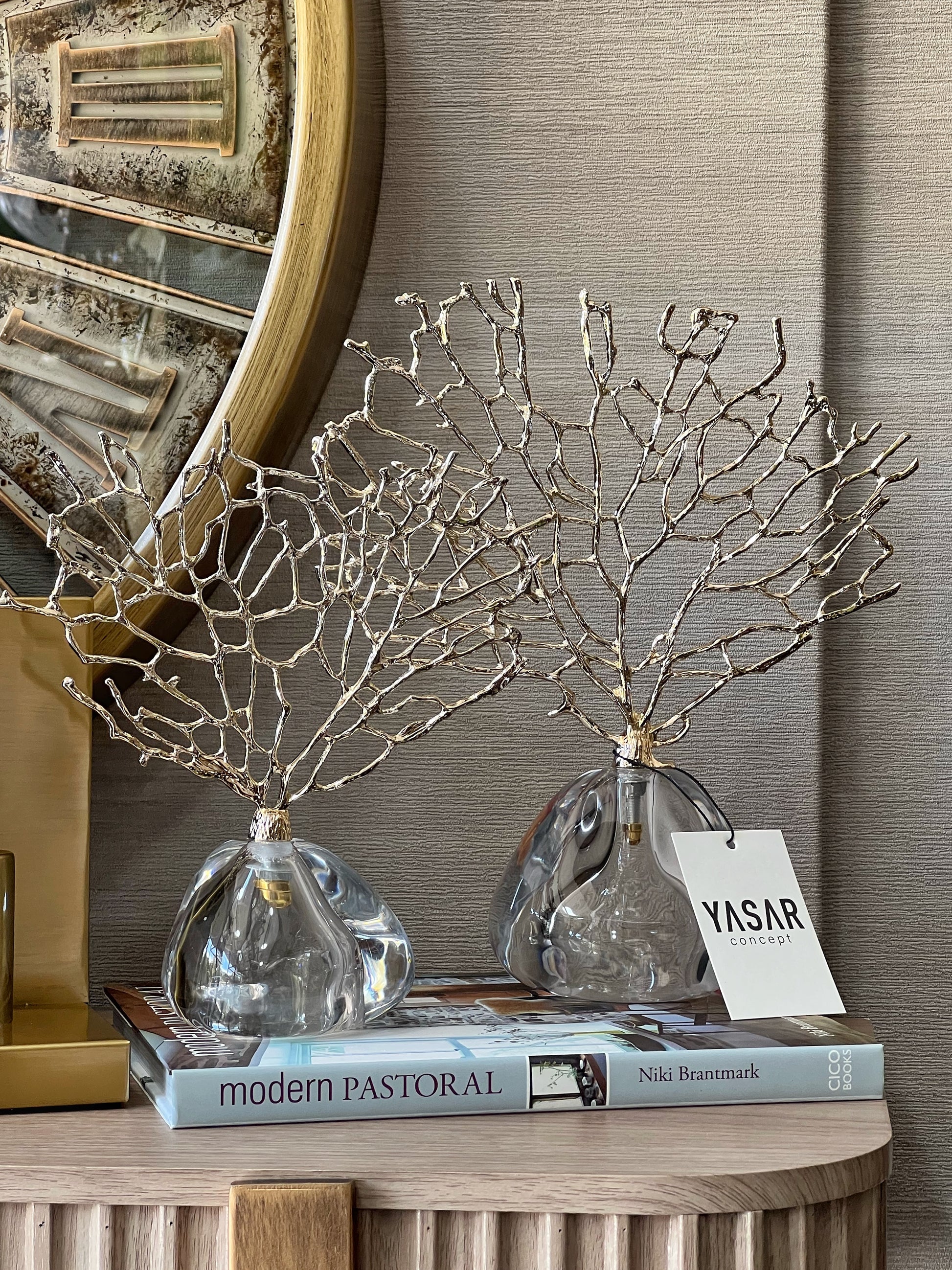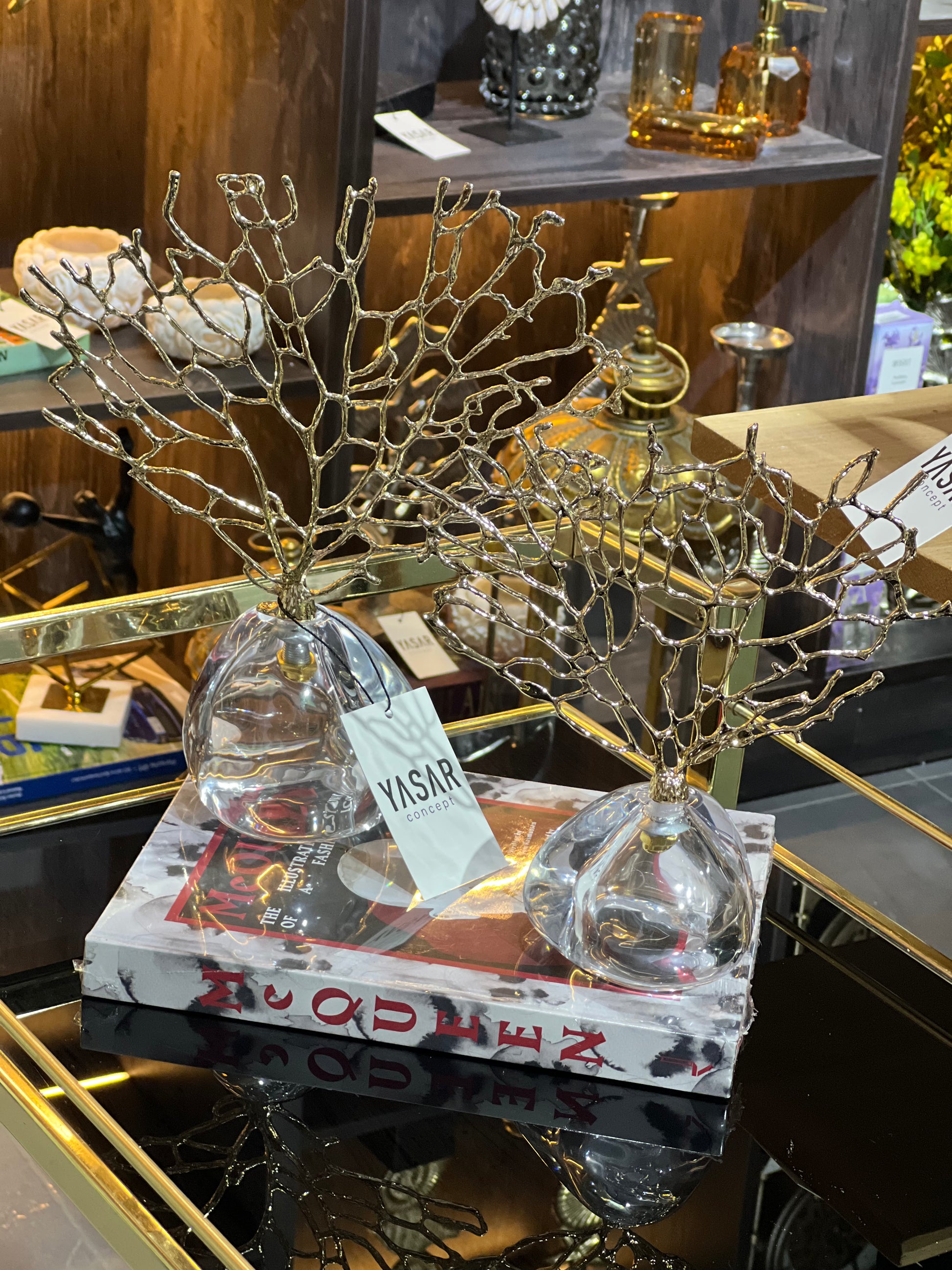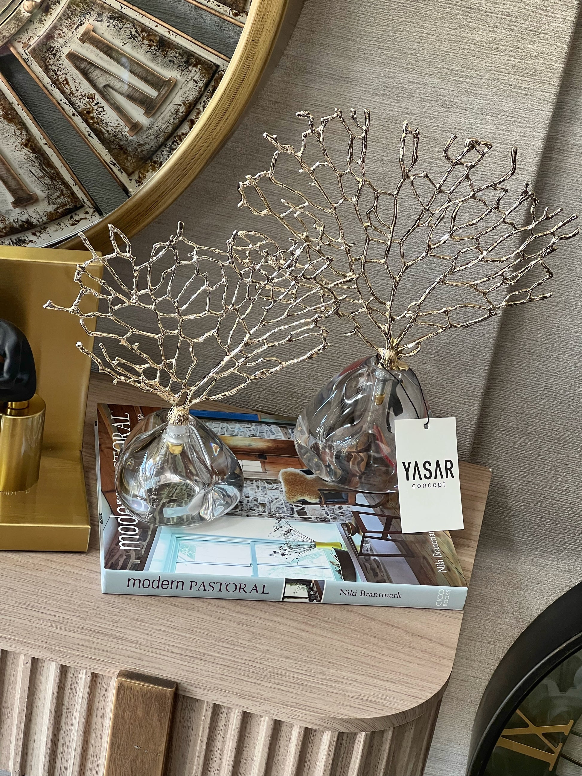 Corallium Metal ve Cam Dekoratif Mercan Obje Gold Set