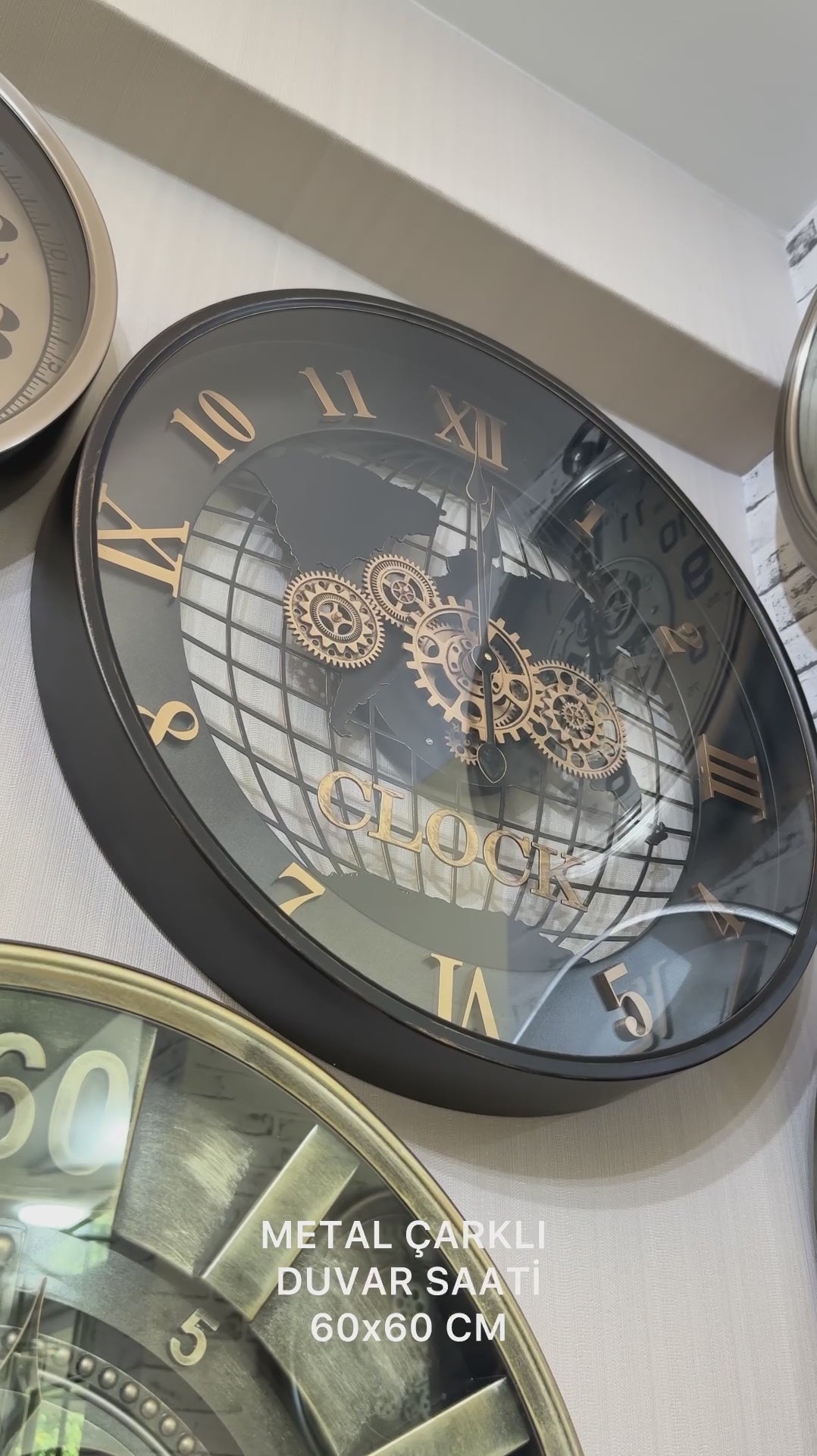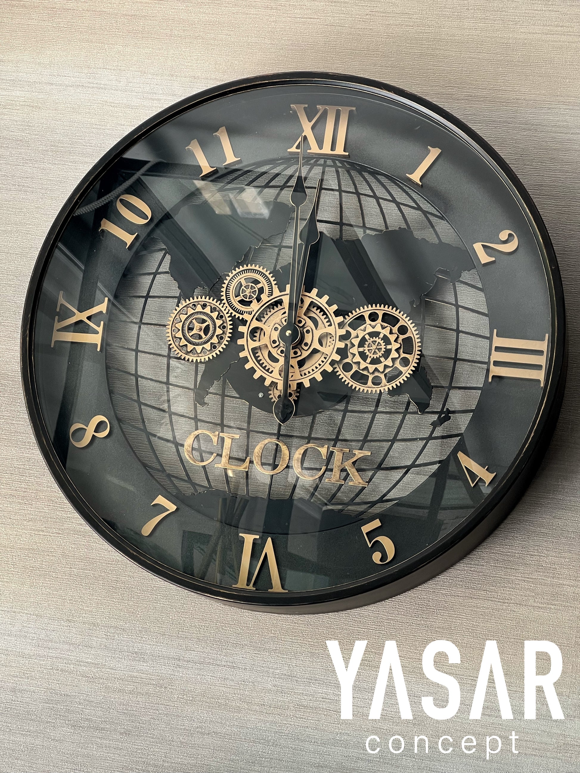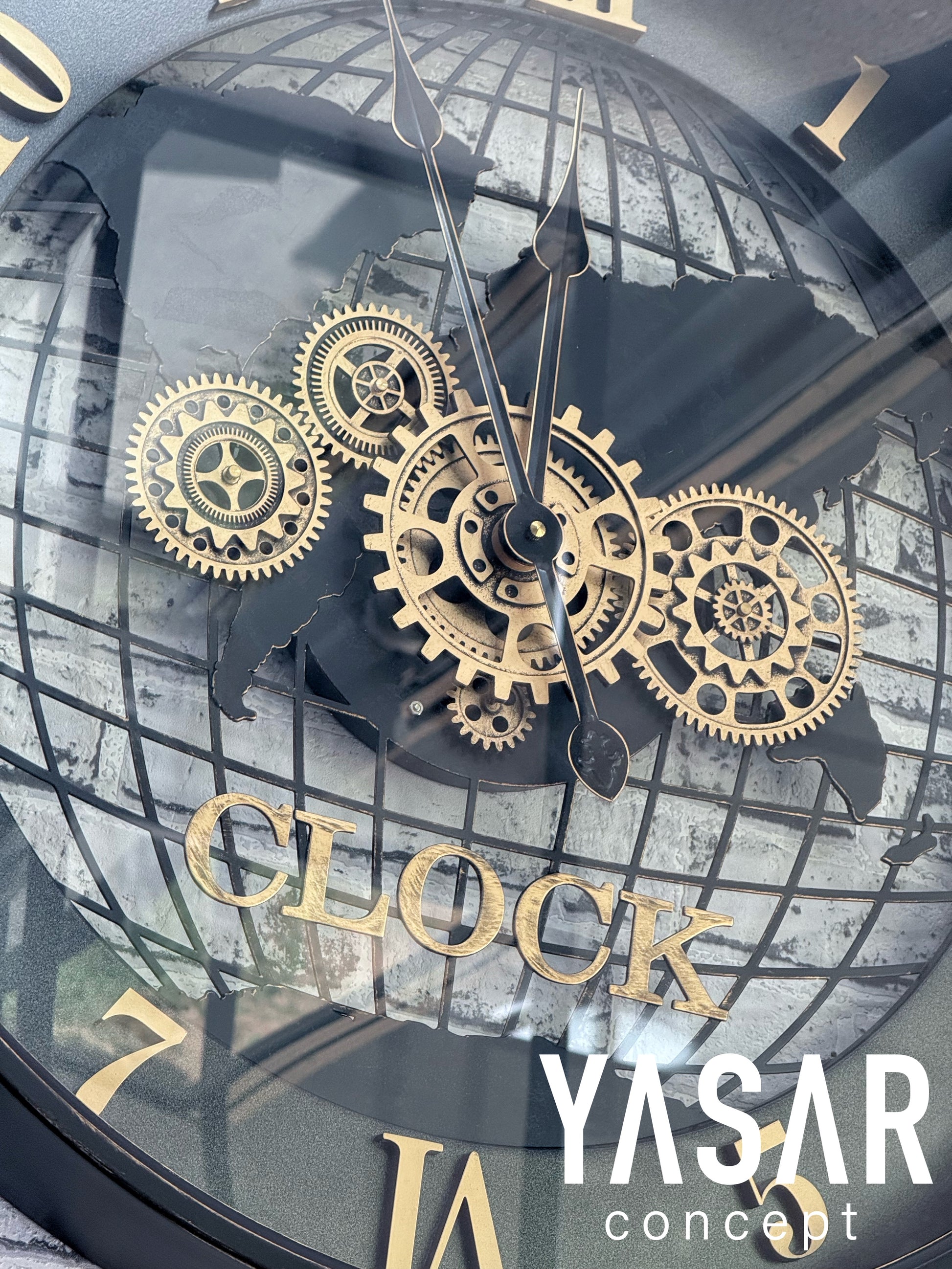 Cosmochron Dünya Haritalı Metal Çarklı Duvar Saati 60 Cm