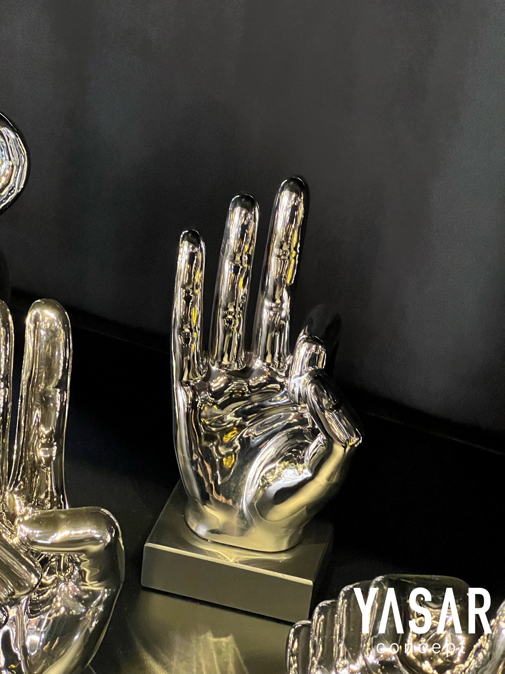 Zarif detayları ve kaliteli yapısıyla, oturma odasından ofise, modern iç mekanların vazgeçilmezi haline gelir. El Figur El Dekoratif Obje-II, sadece bir aksesuar değil, aynı zamanda evinize sofistike bir hava katan bir sanat parçasıdır.