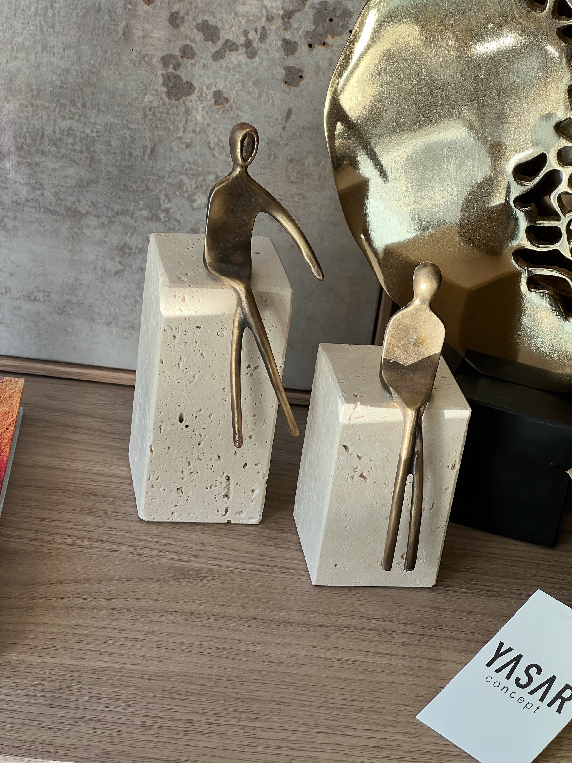Figurio Dekoratif Soyut Adam Obje Set Traverten Mermer
