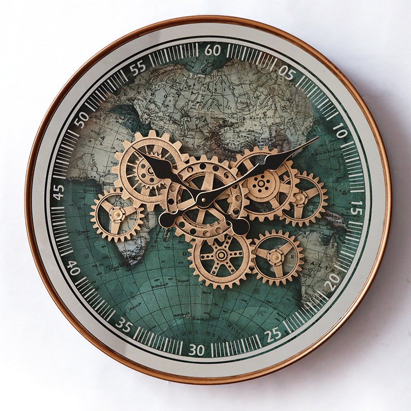 Imperio Dünya Haritalı Metal Çarklı Duvar Saati 60 Cm
