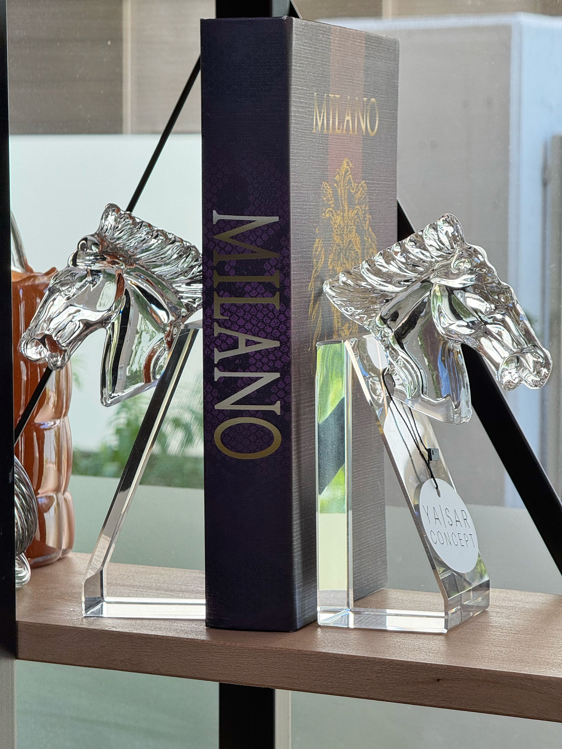 Kristal atlı figürü, zarif tasarımıyla dikkat çekerken, kitaplarınızı düzenli tutmanıza yardımcı olur. Oturma odası, çalışma odası veya kütüphanenizde hem dekoratif hem de işlevsel bir rol üstlenen bu parça, her türlü dekorasyon stiline uyum sağlar.