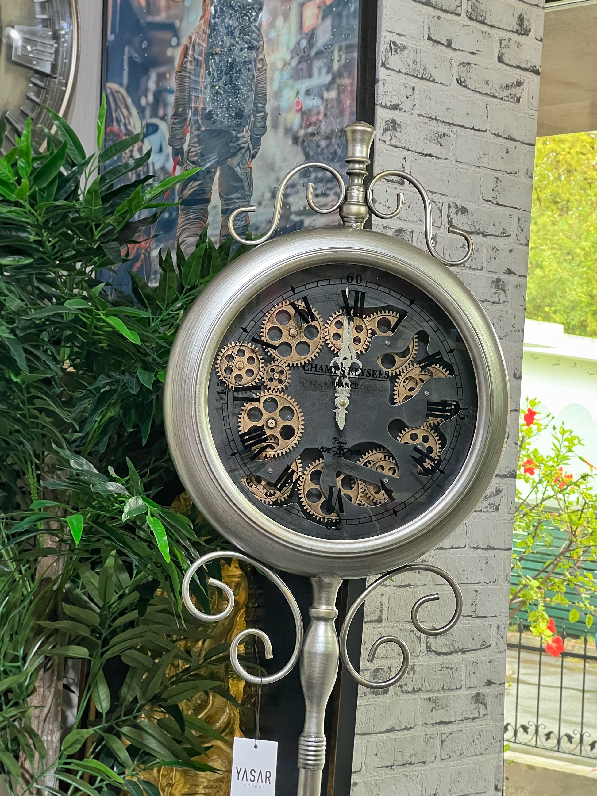 Labella Ayaklı Çarklı Yer Saati, 180 cm yüksekliği, klasik ayak formu ve detaylı çark mekanizmasıyla yaşam alanlarına gösterişli bir karakter kazandırıyor. Gümüş rengi gövdesi ve ortadaki hareketli çark sistemine sahip saat yüzeyi, hem fonksiyonel hem de estetik bir kullanım sunar.