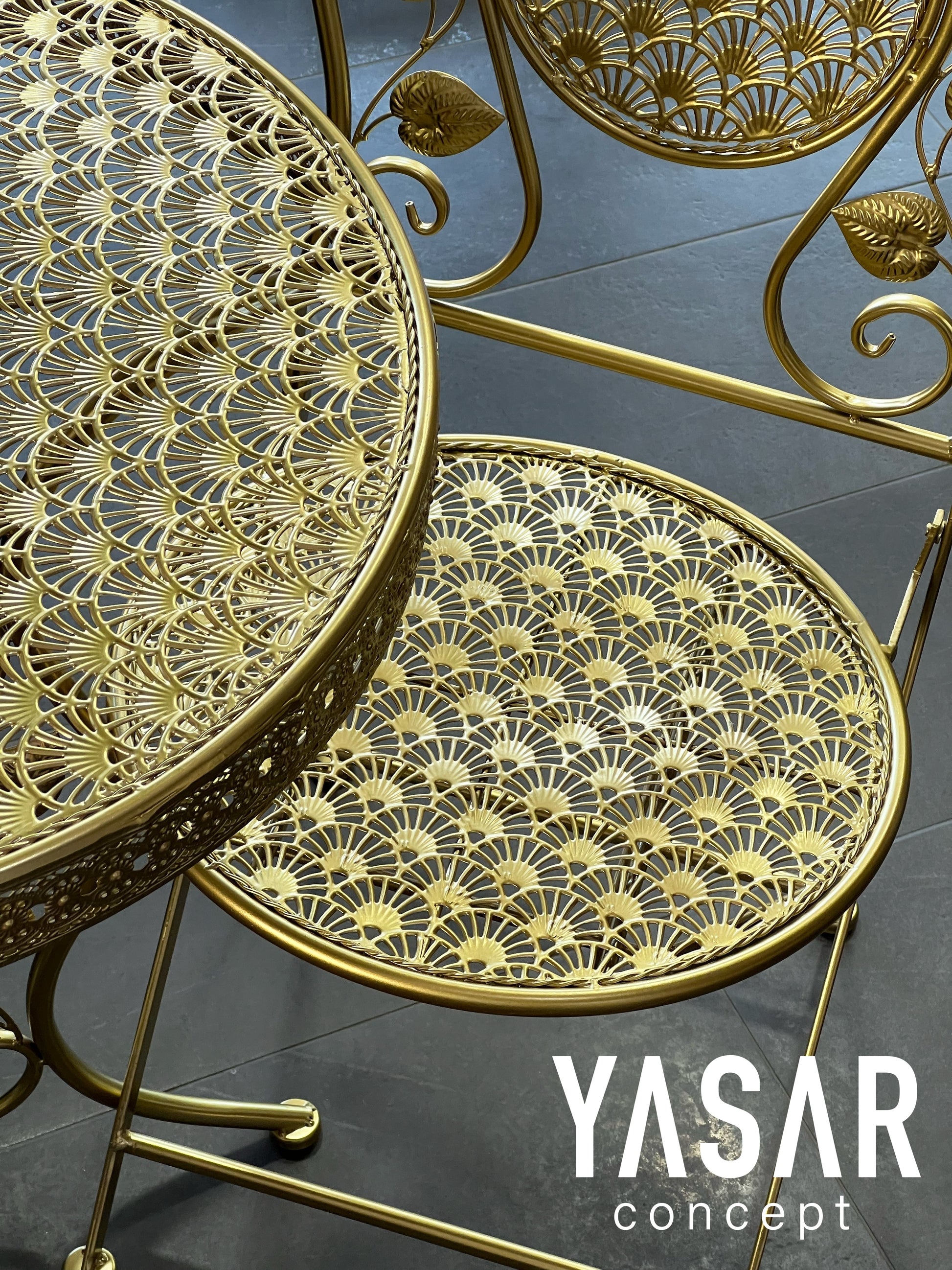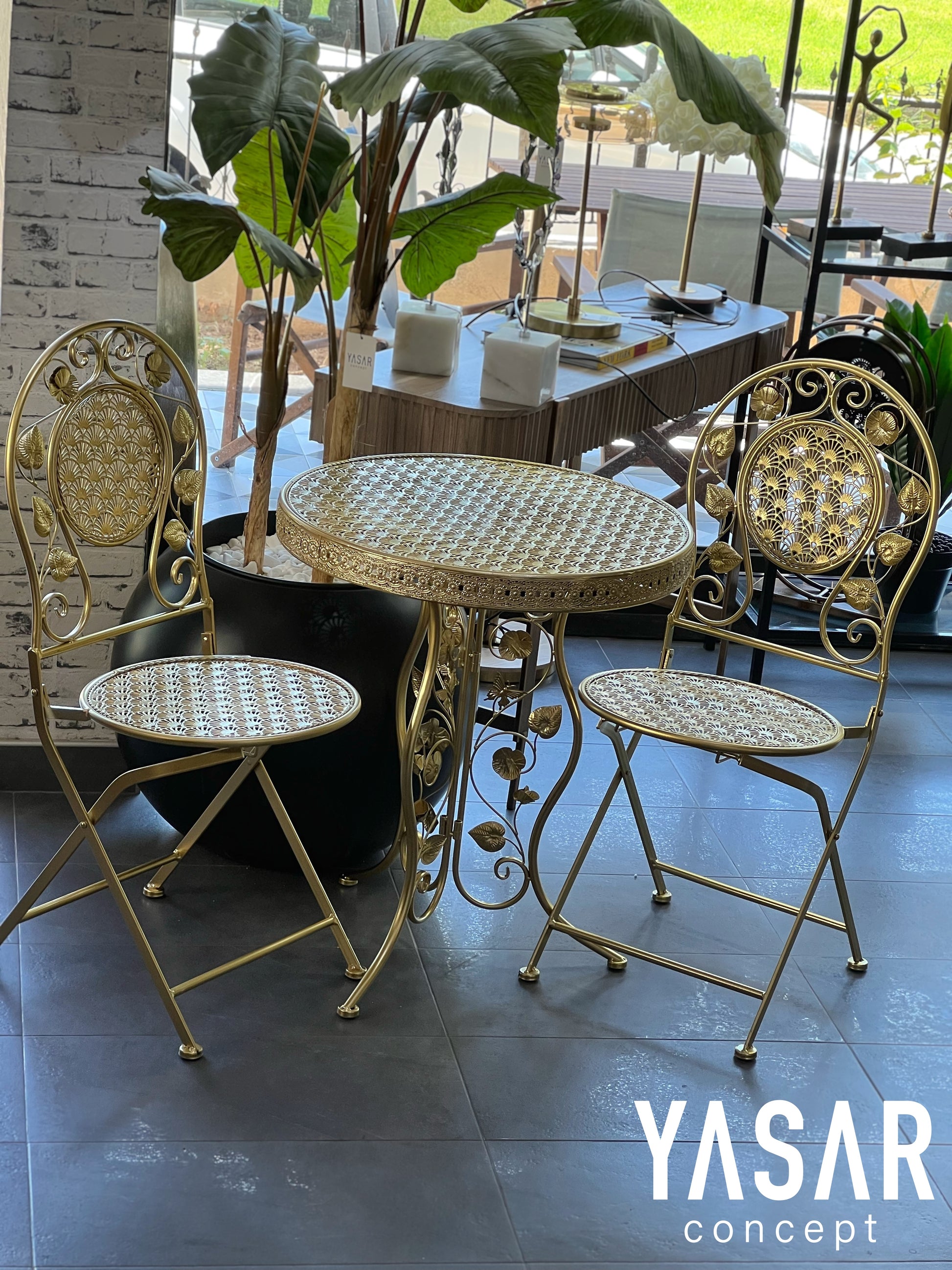 Laforgia Ferforje Masa Sandalye Takımı Gold
