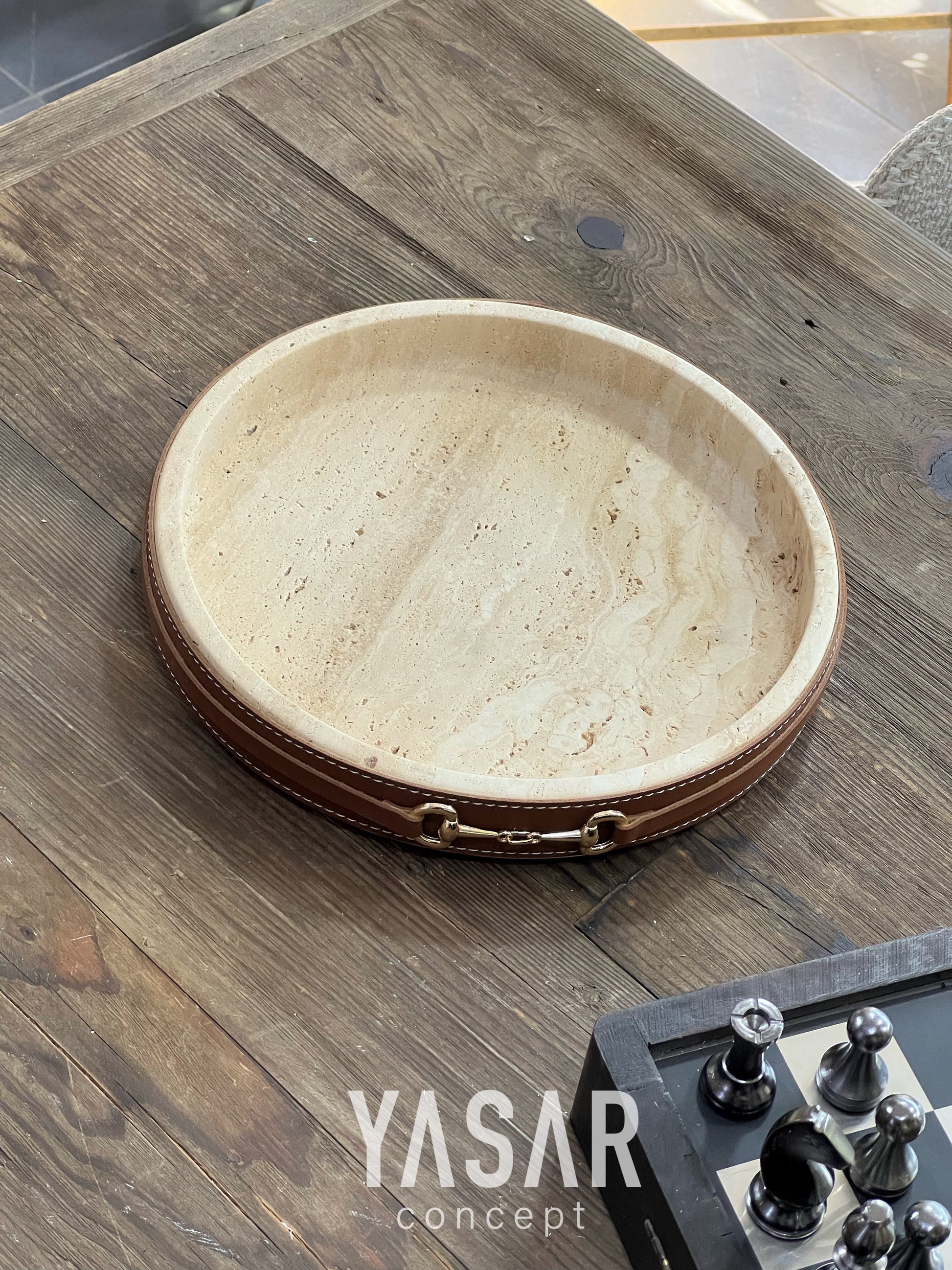 Lederra Traverten Mermer Deri Tepsi 25 Cm