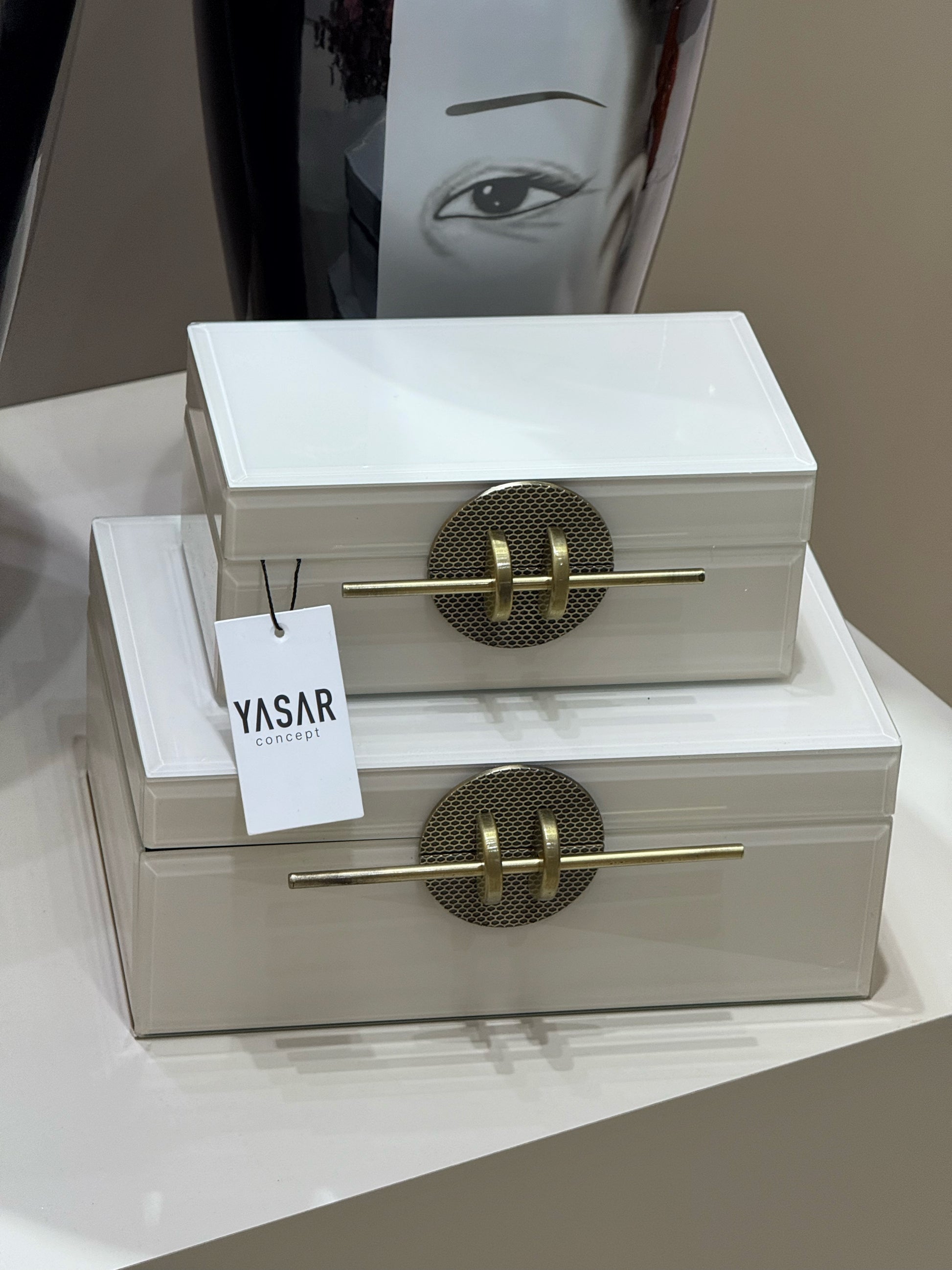 Linsta Dekoratif Cam Kutu Set Kırık Beyaz