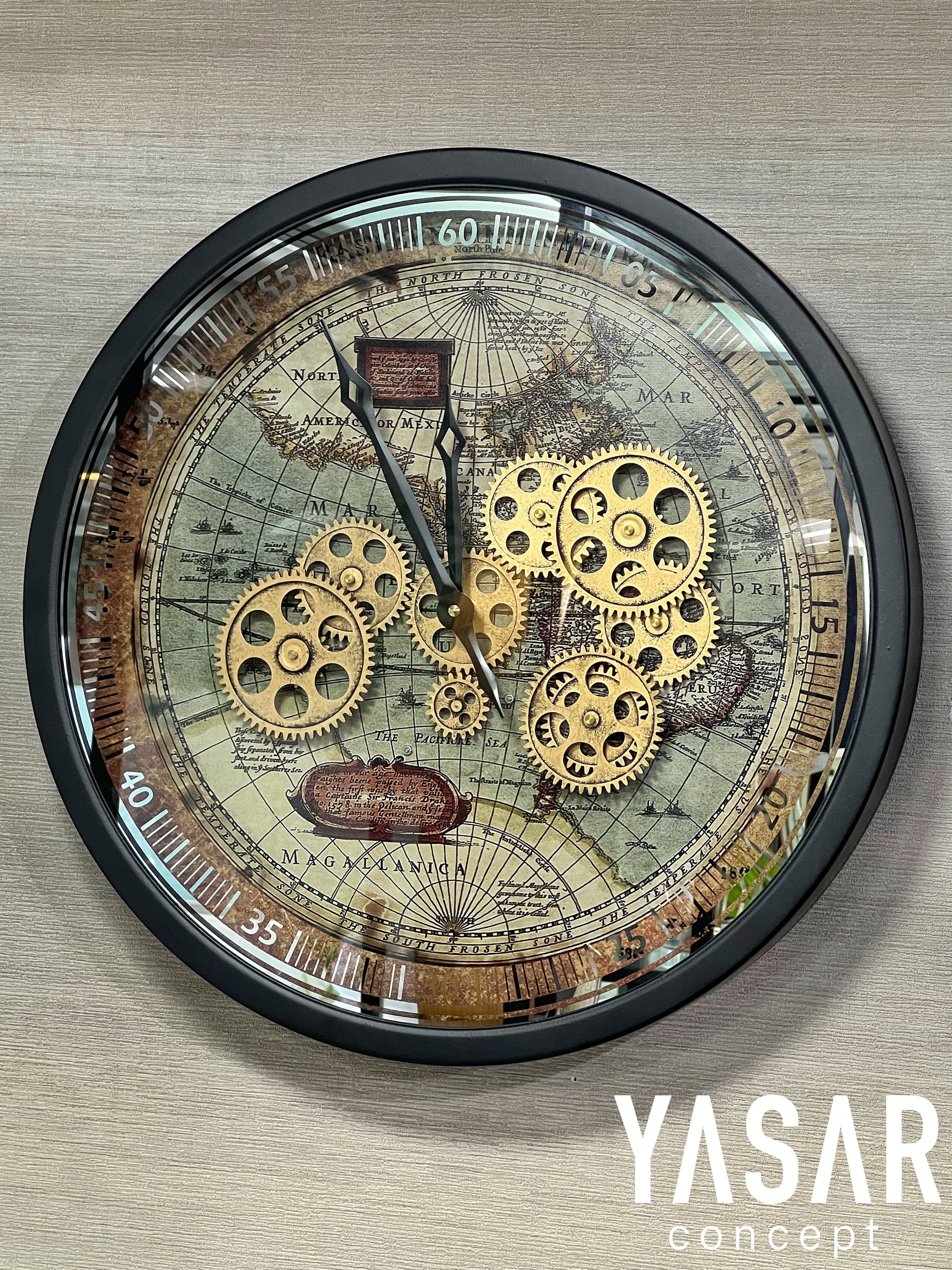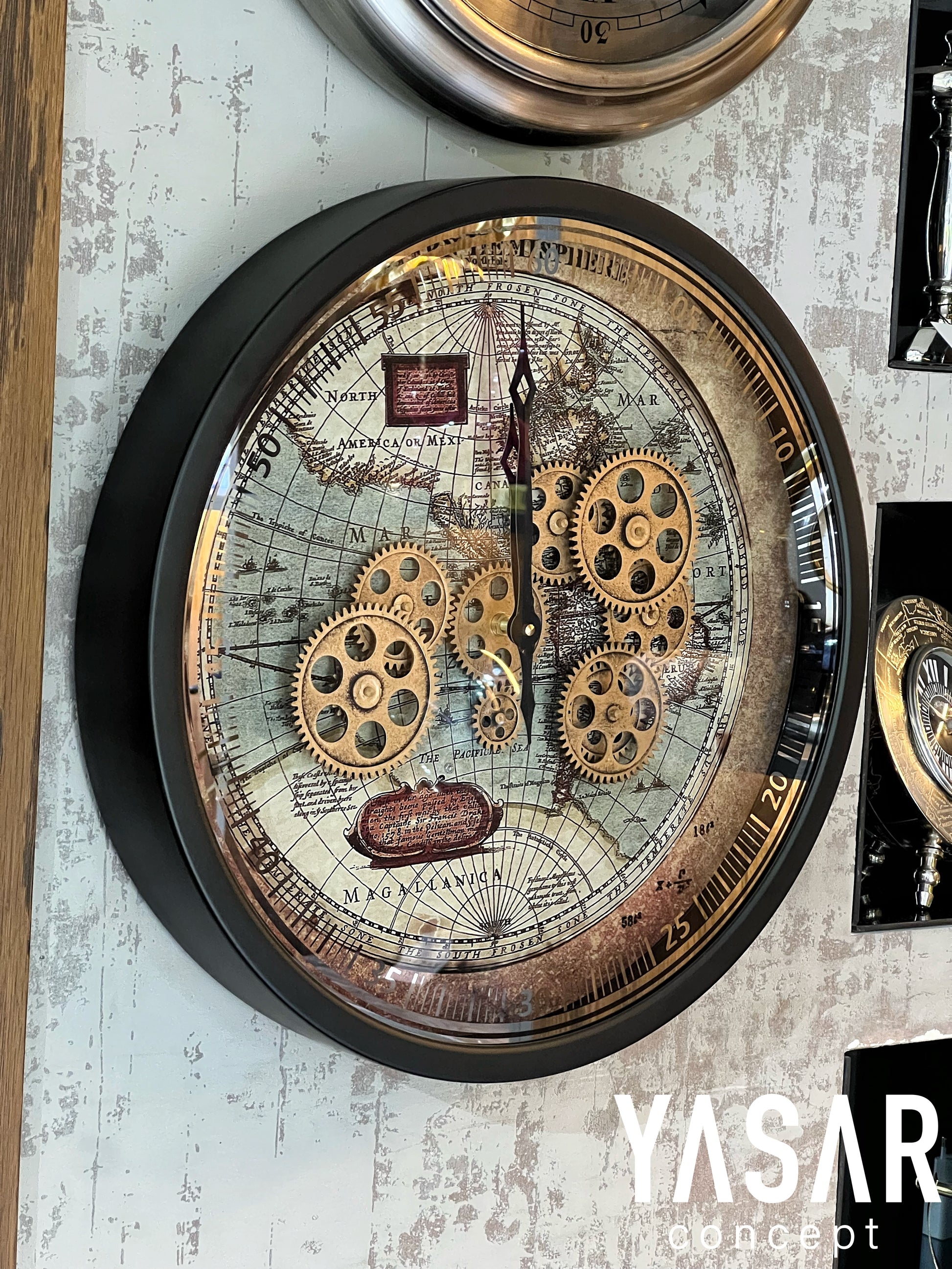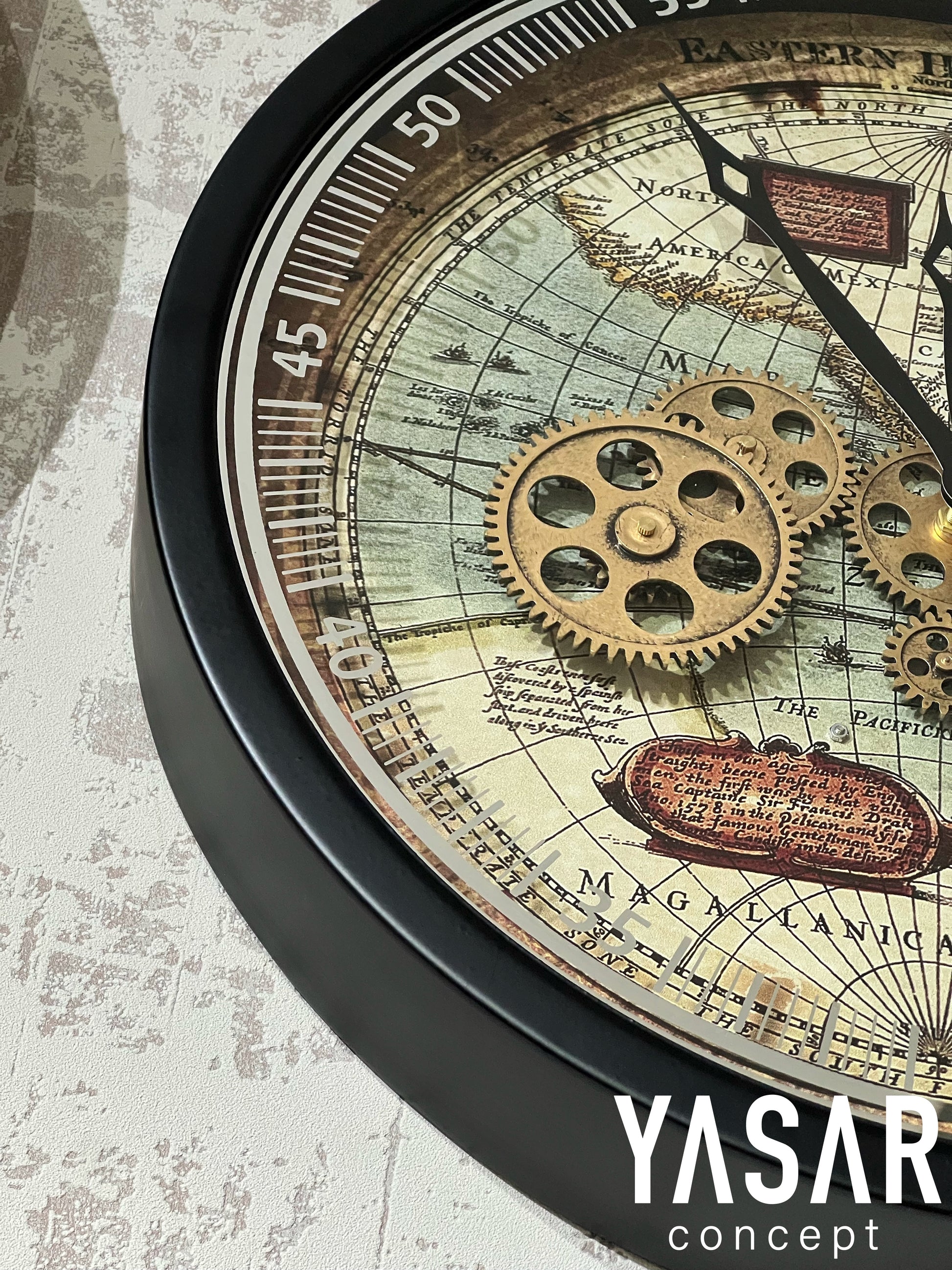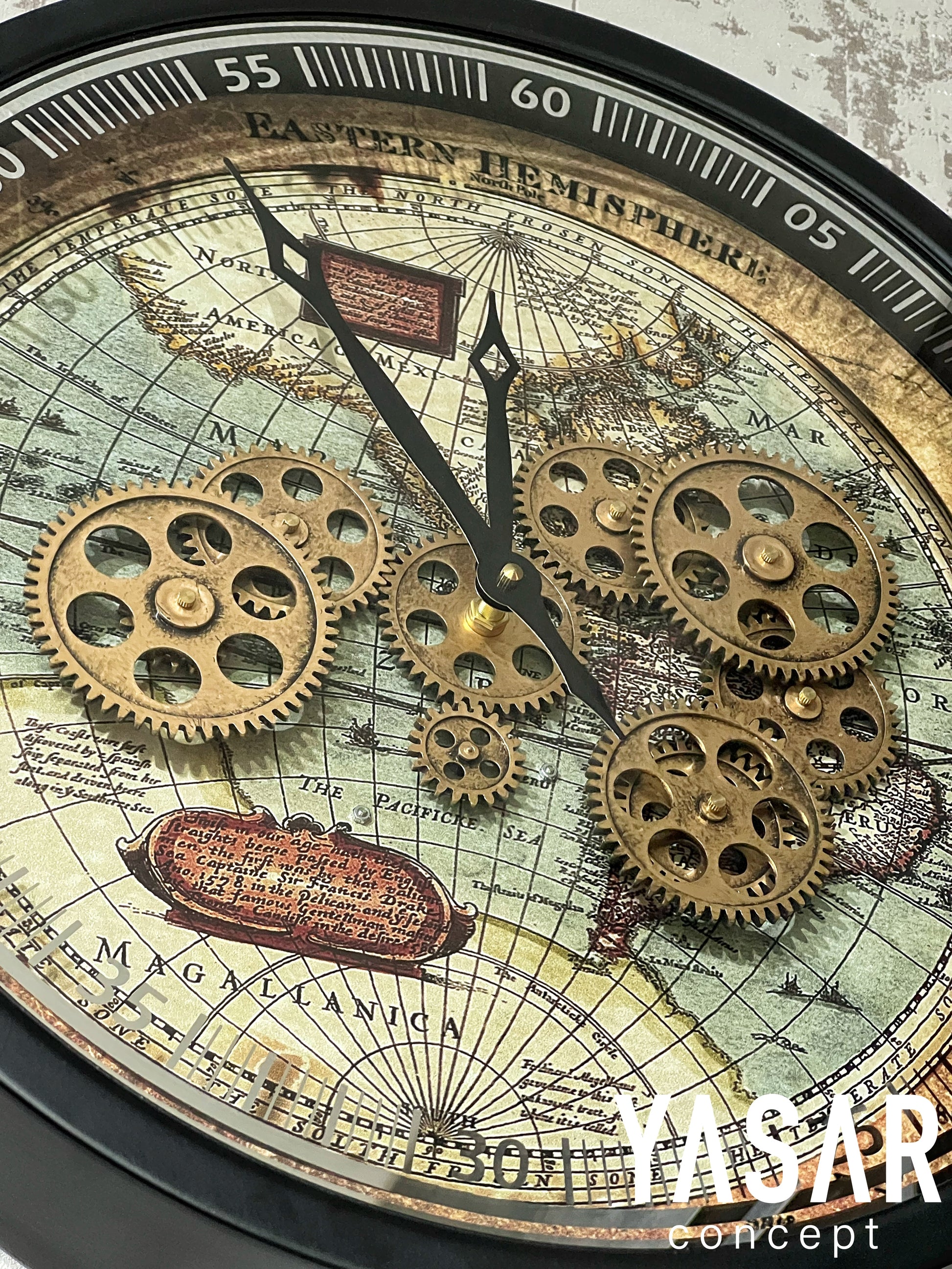 Maphoris Dünya Haritalı Metal Çarklı Duvar Saati 46 Cm