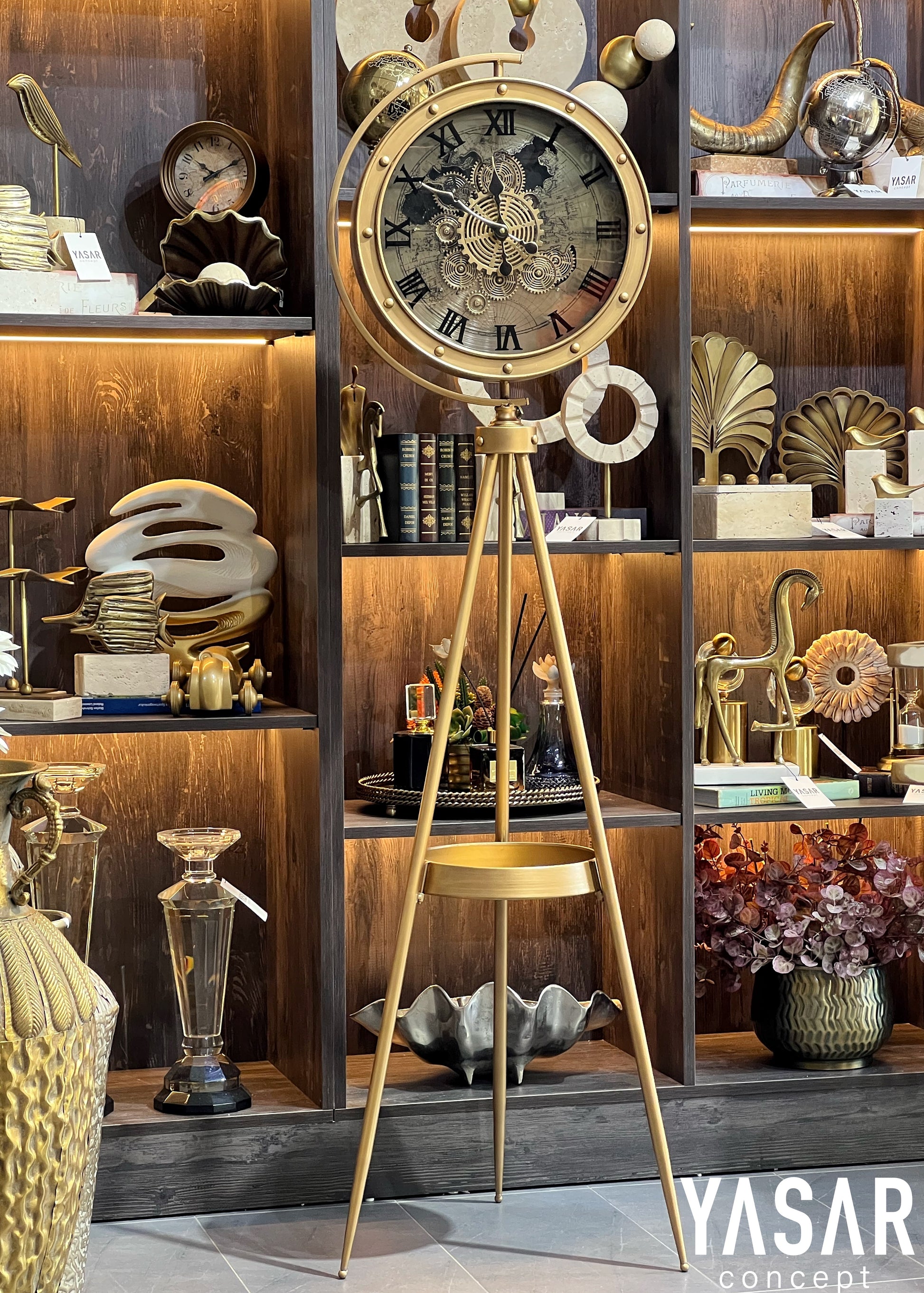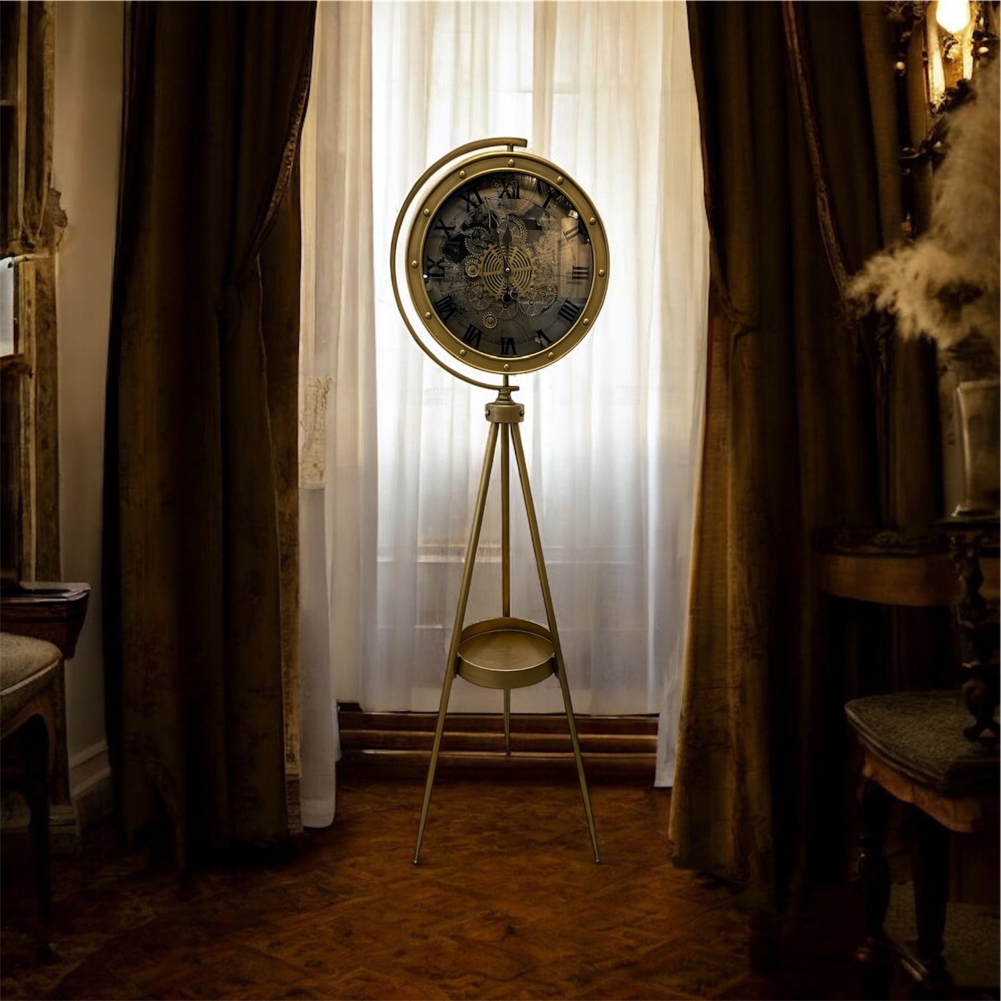 Mecrova Dünya Haritalı Metal Çarklı Tripod Ayaklı Saat