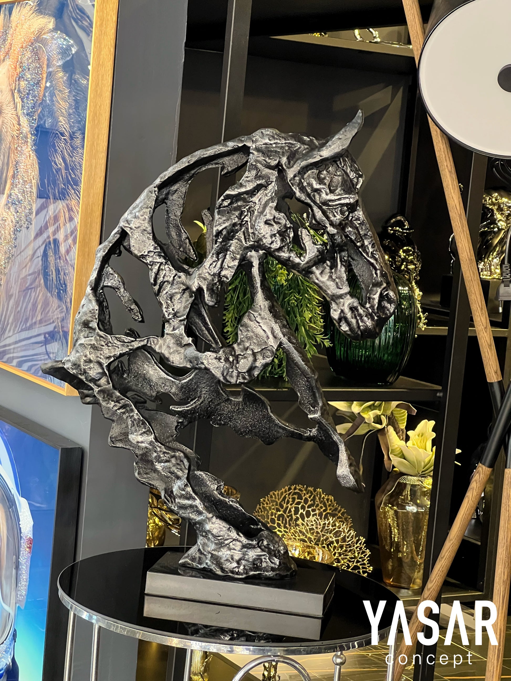 Asil at figürünün güçlü ve zarif duruşu, modern ve minimalist tasarımlarla mükemmel uyum sağlar. Mega boyutu sayesinde, bu dekoratif at objesi bulunduğu alanın odak noktası haline gelir ve zarif detaylarıyla her bakışta farklı bir anlam kazanır.