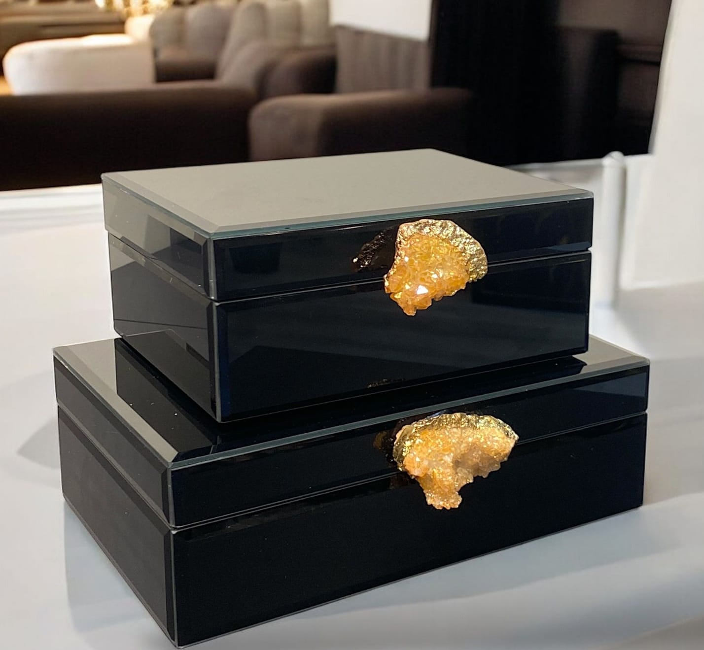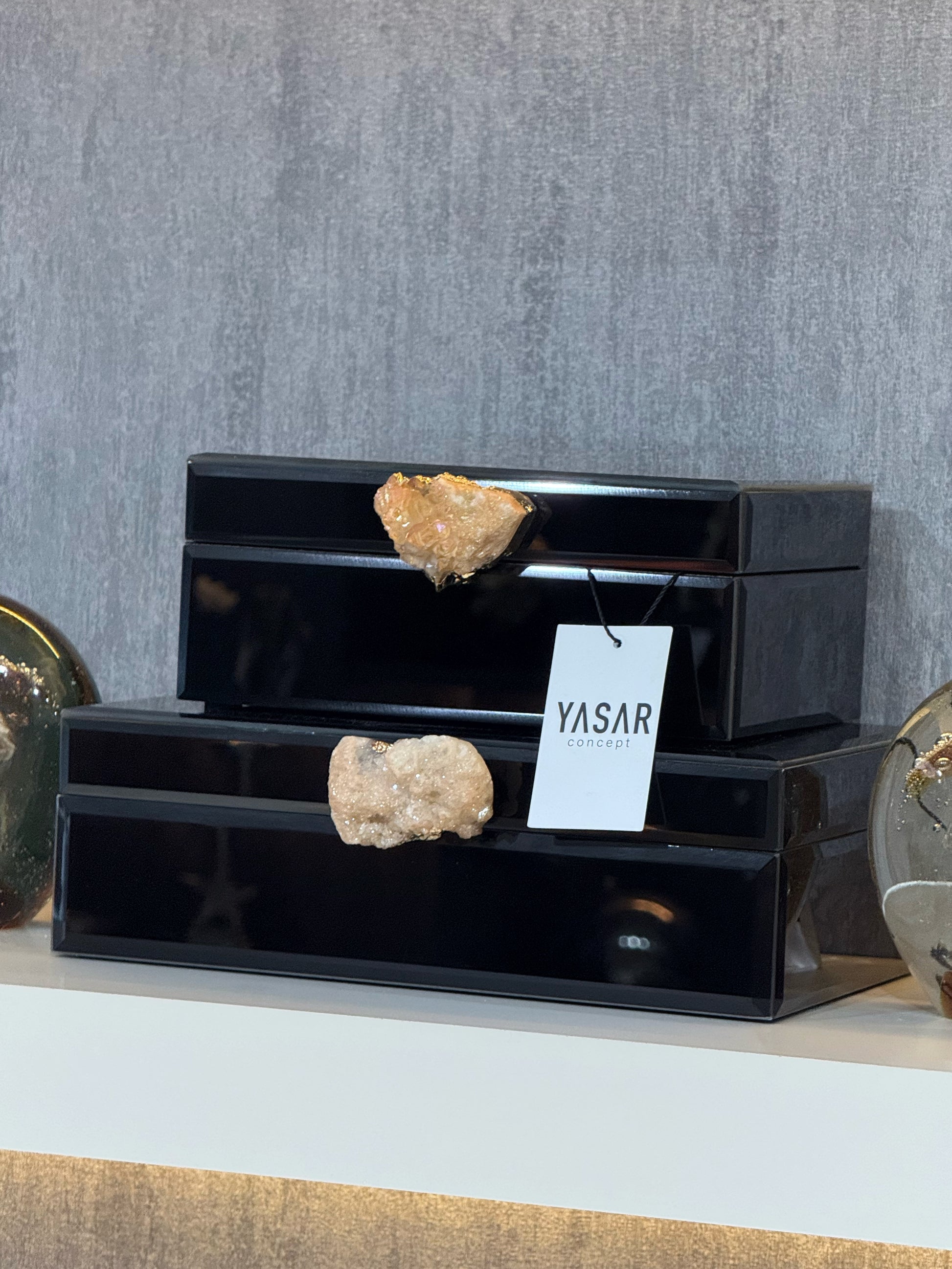 Miravia Dekoratif Cam Kutu Doğal Taşlı Siyah Set