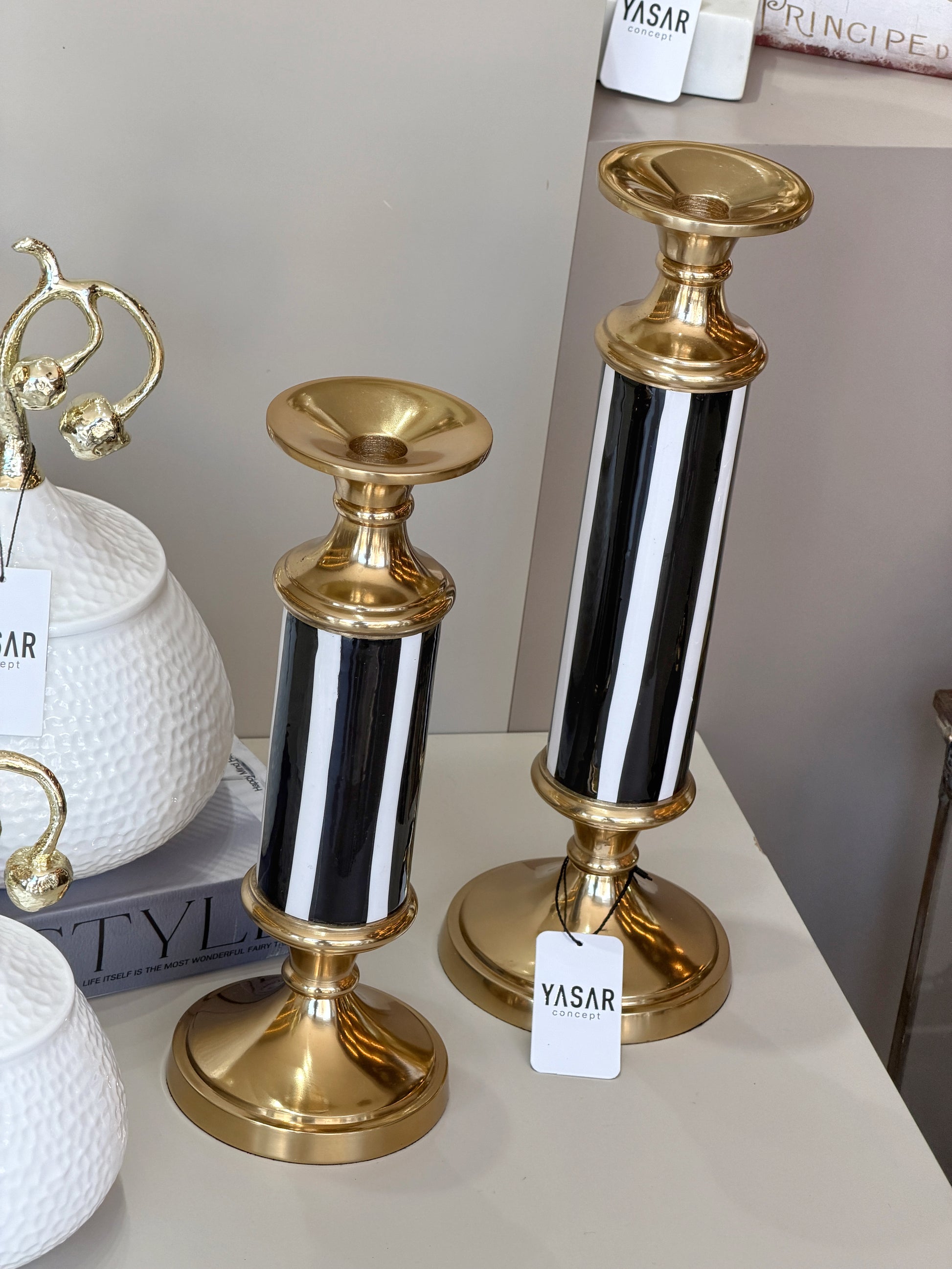 Noirline Siyah Beyaz Çizgili Metal Mumluk Set
