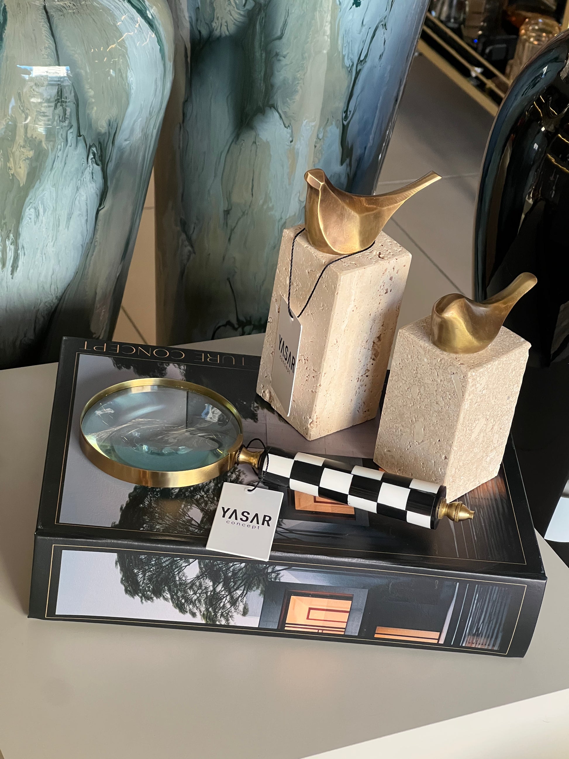 Ornithis Dekoratif Kuş Obje Set Traverten Mermer (İkili)