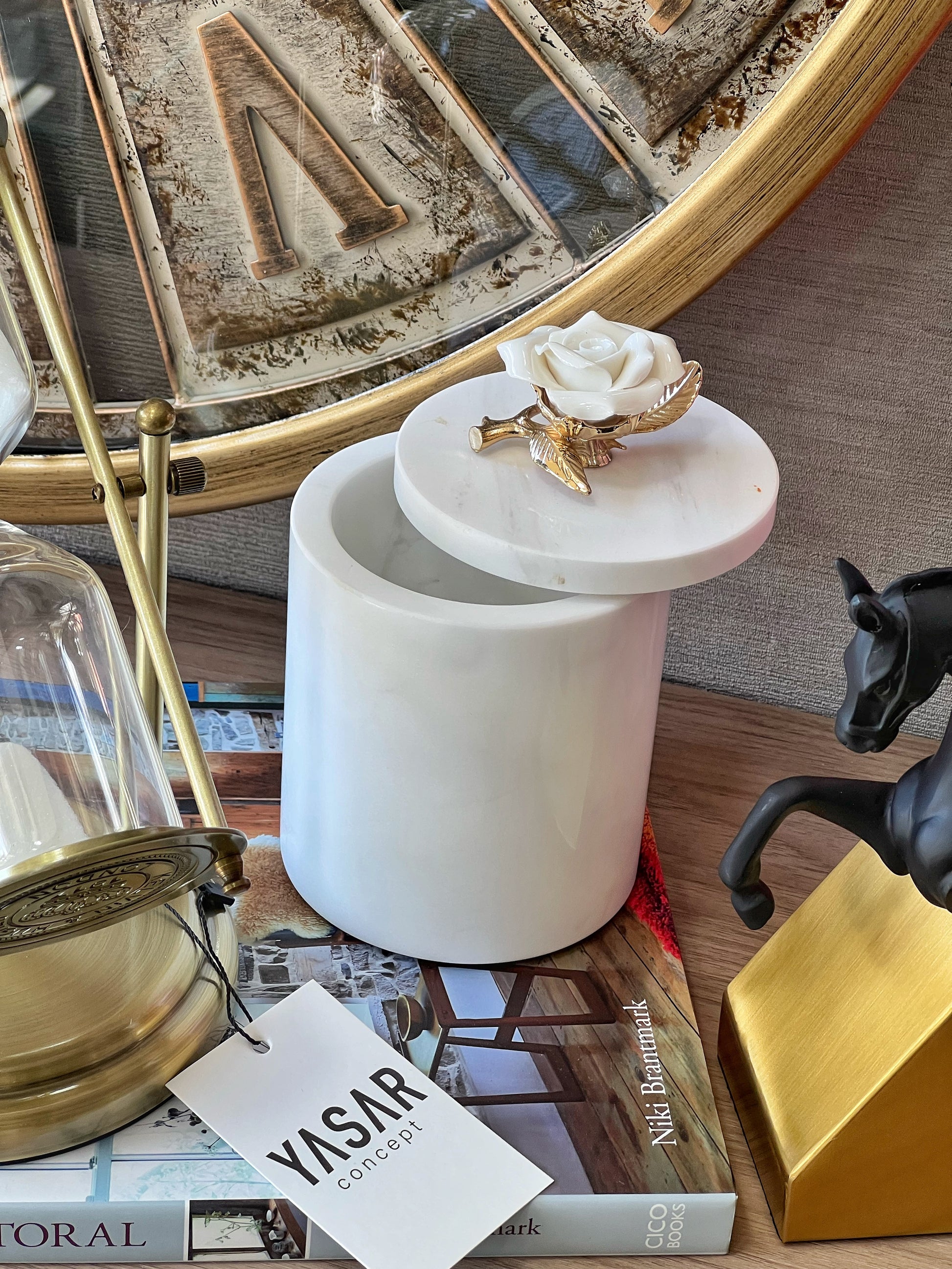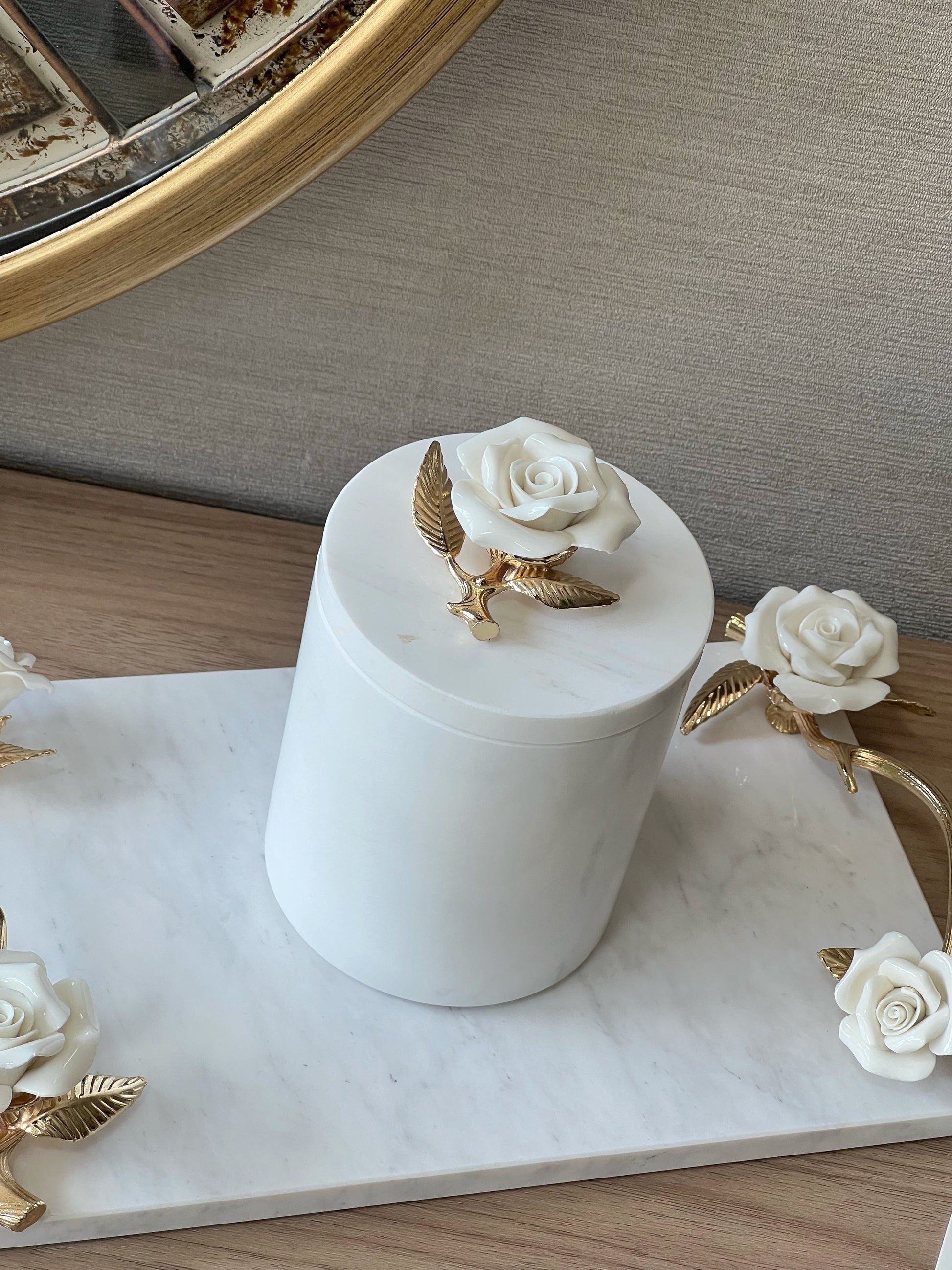 Rosamara Mermer Kutu Porselen Gül Detaylı