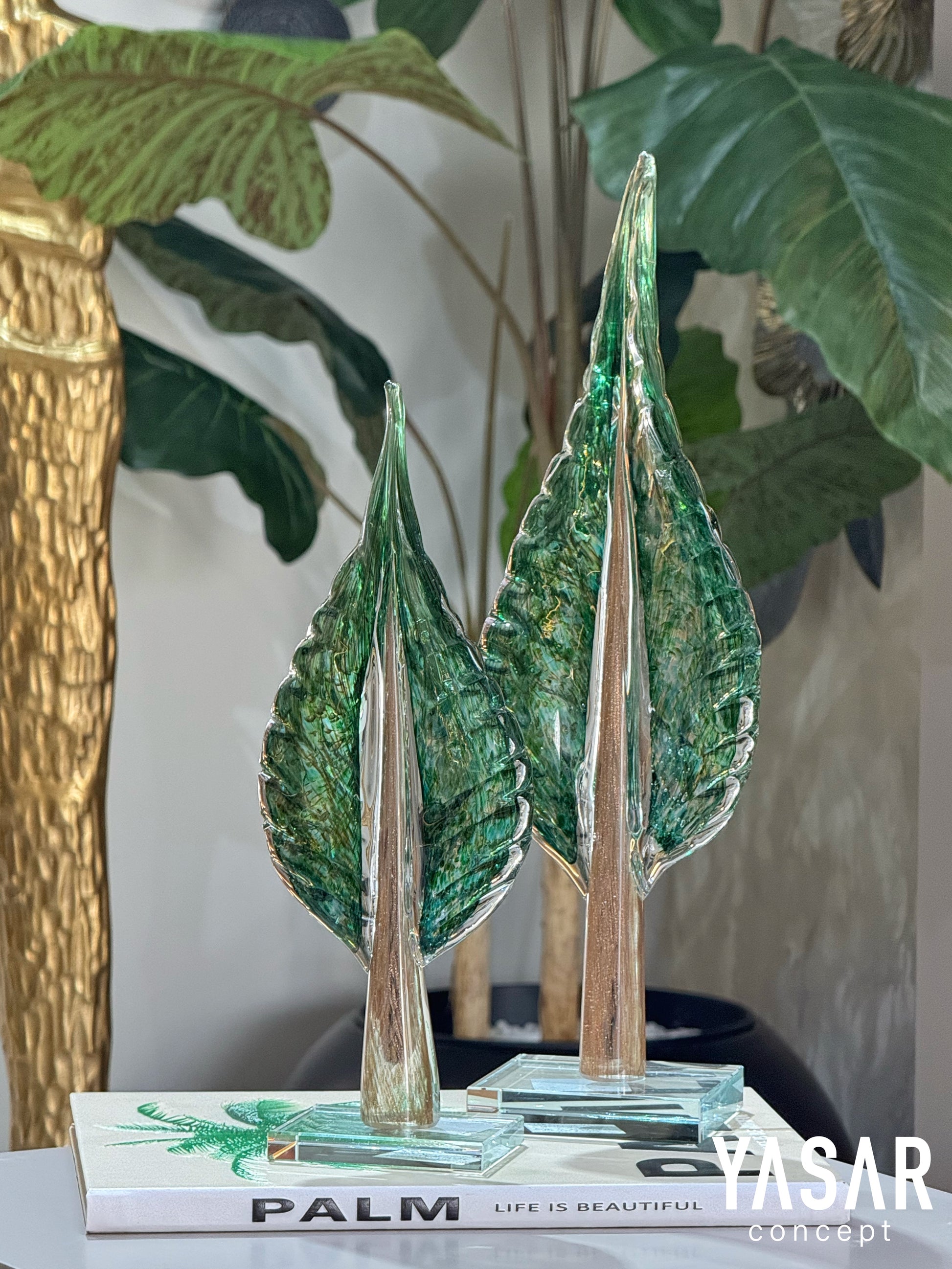 Silvanis Cam Yaprak Obje Set Yeşil