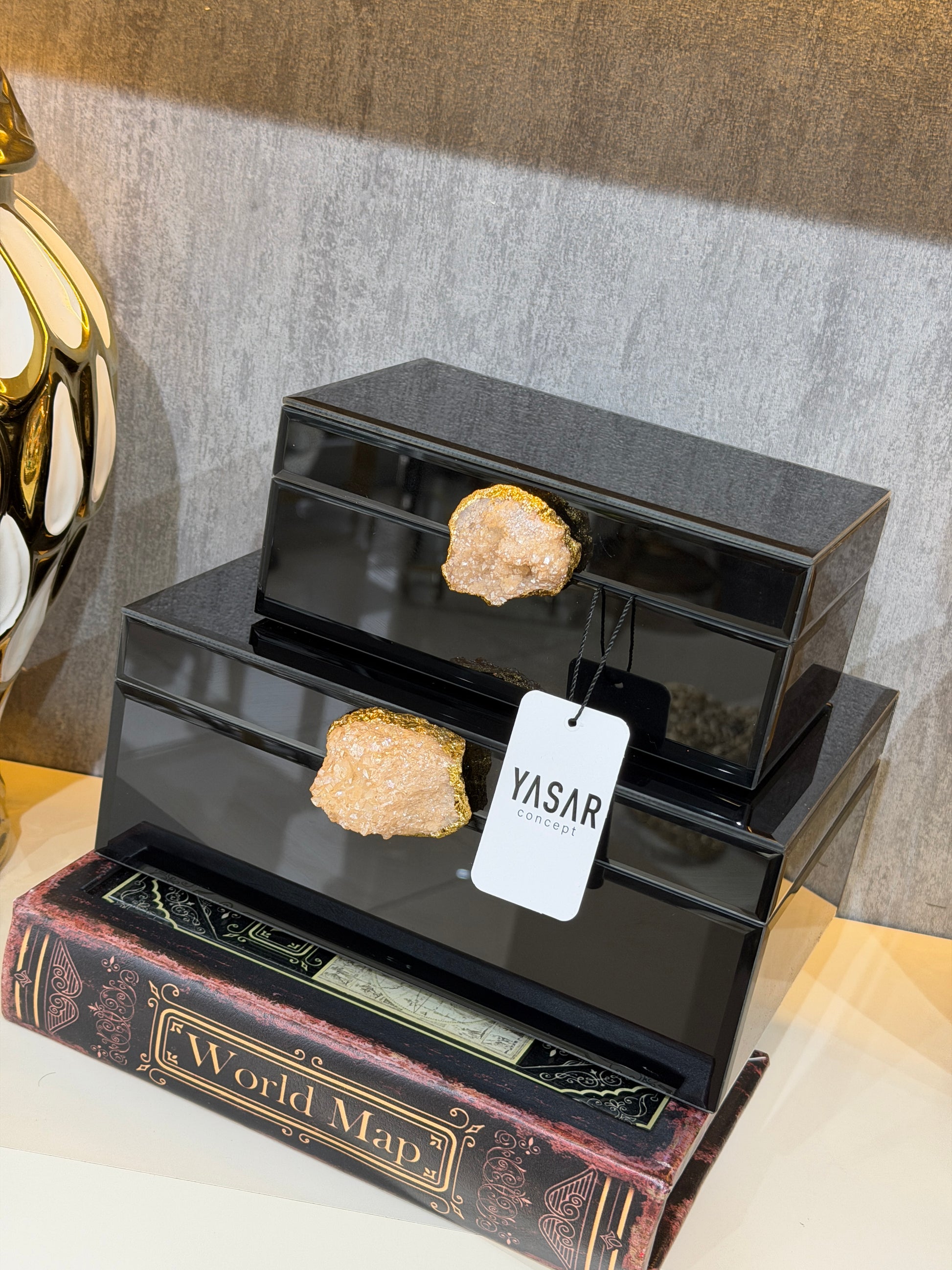 Stonelith Dekoratif Cam Kutu Set Siyah