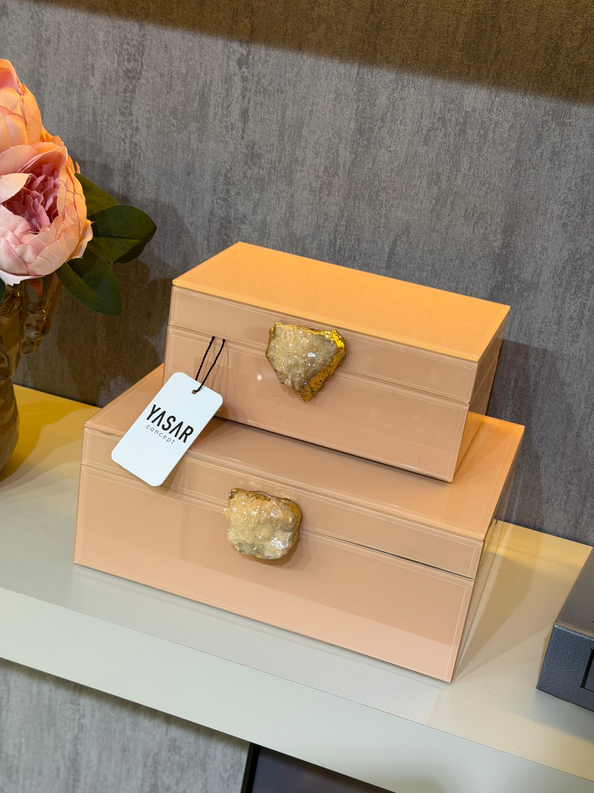 Stonelith Dekoratif Cam Kutu Set Somon Bej