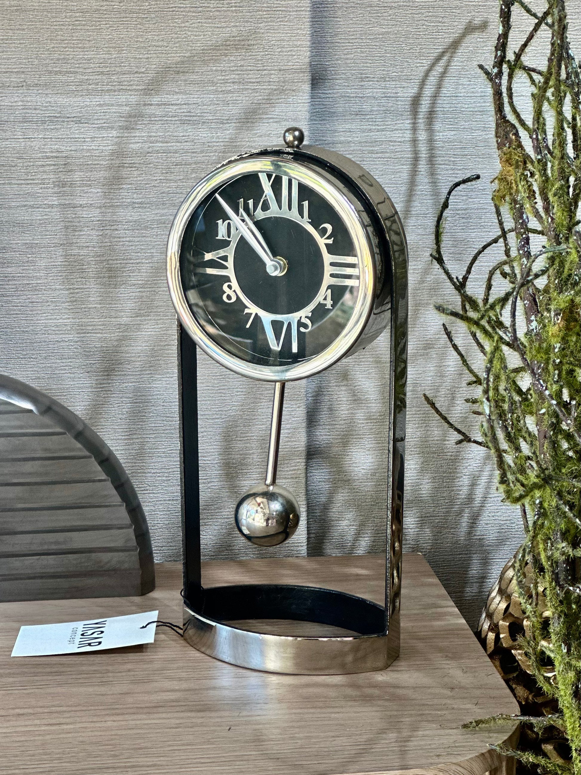 Templaric Metal Masa Saati, çan salınımlı yapısı ve şık tasarımıyla masa üzeri dekorasyonda nostaljik bir etki yaratır. Gövdesinde kullanılan parlak metal malzeme ile öne çıkan bu saat, siyah kadranı ve rakamlarıyla klasik bir zaman algısı sunarken, alt kısmındaki metal salınımlı sarkaç detayı ile dinamizm kazandırır.