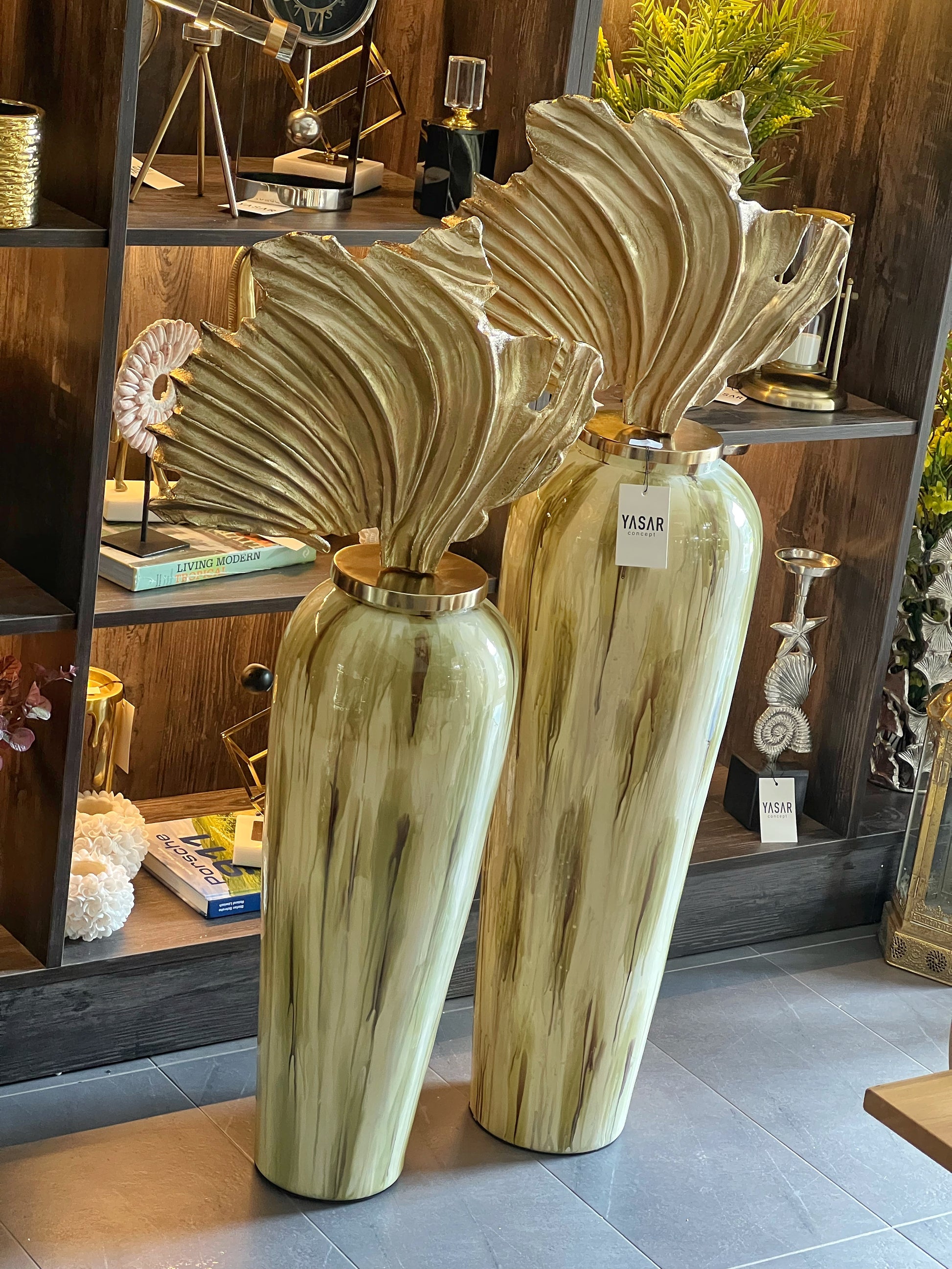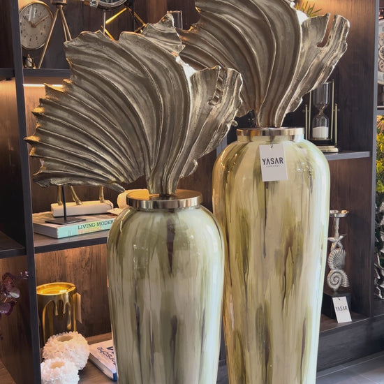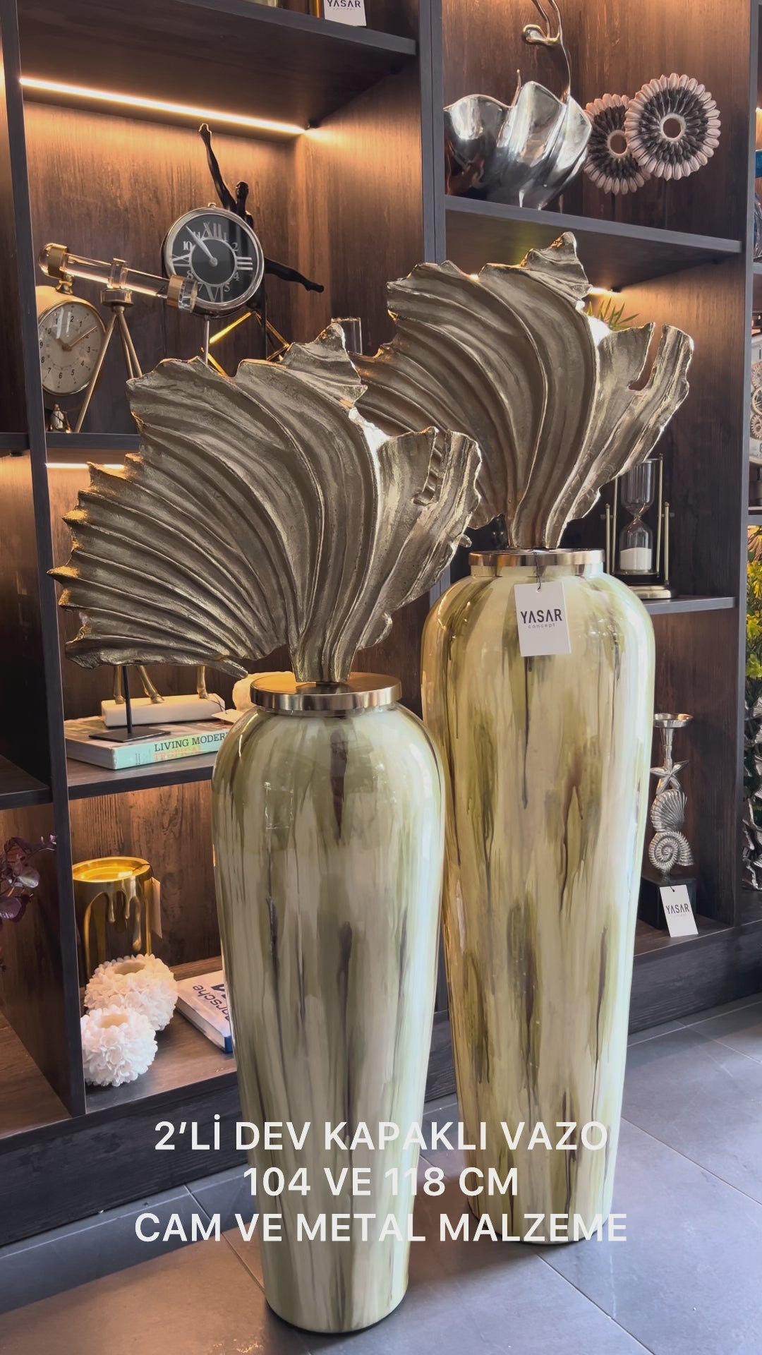 Vetrilux Yeşil Krem Dekoratif Kapaklı Mega Cam Vazo