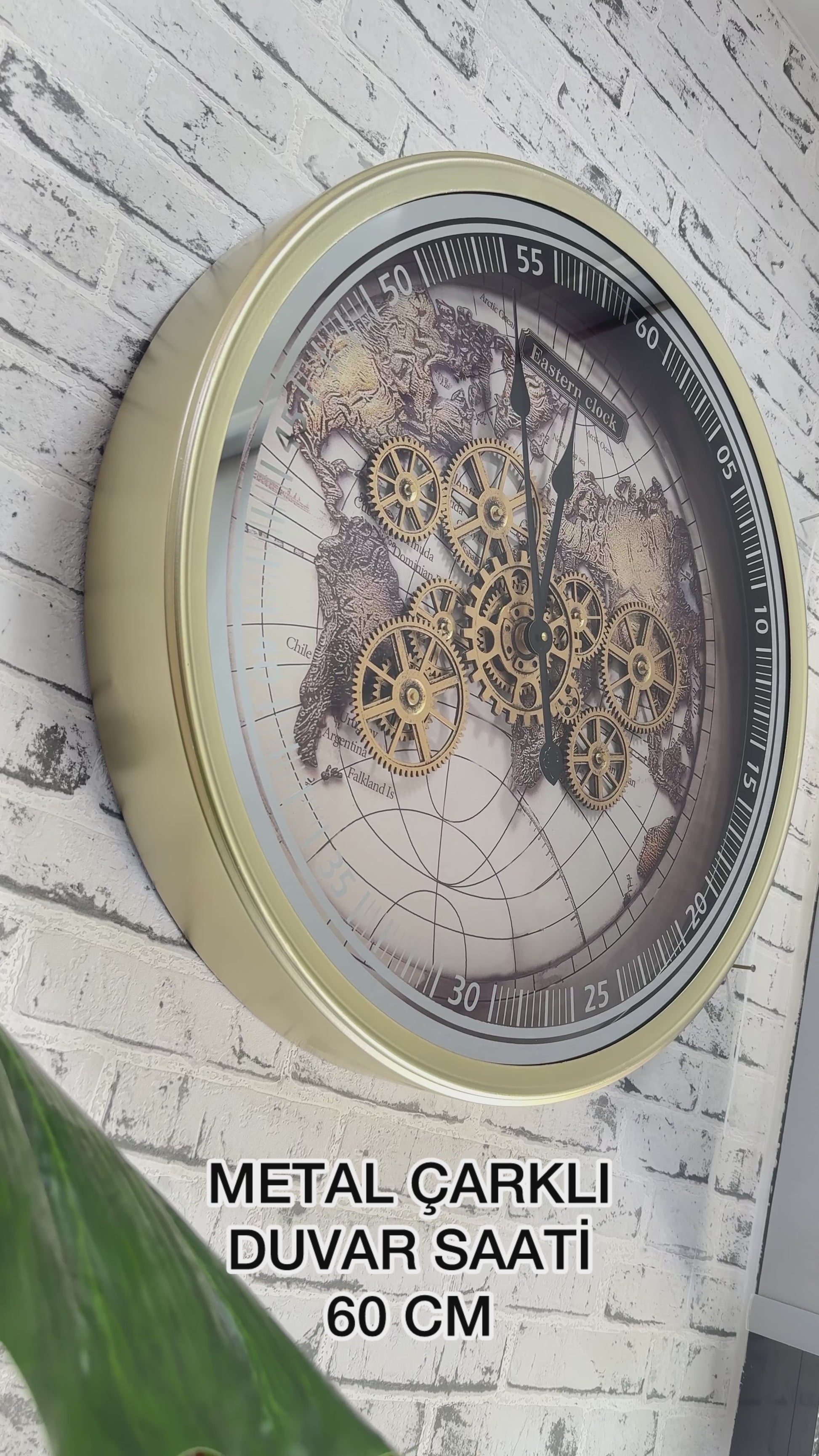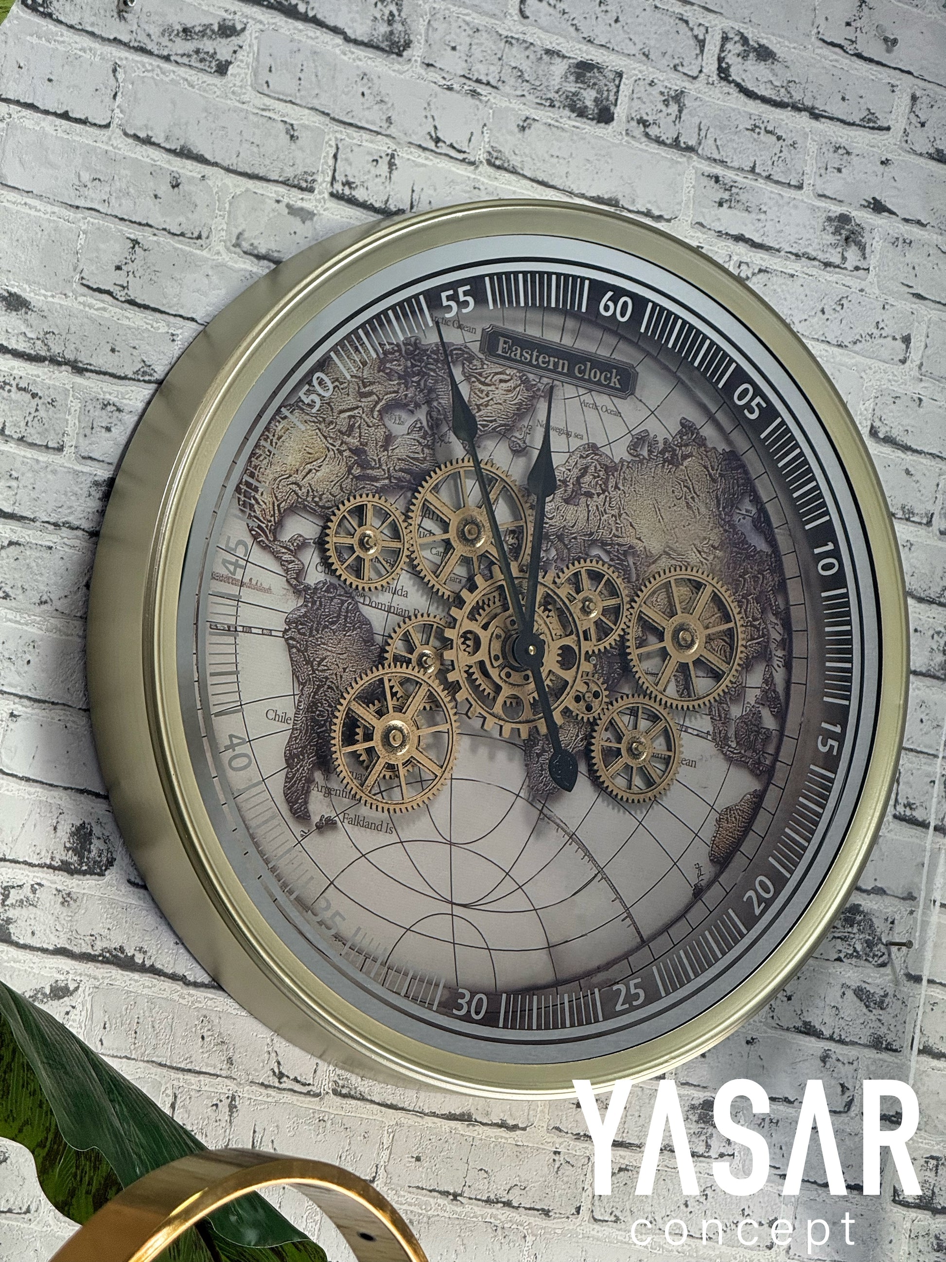 Vintorque Dünya Haritalı Metal Çarklı Duvar Saati 60 Cm