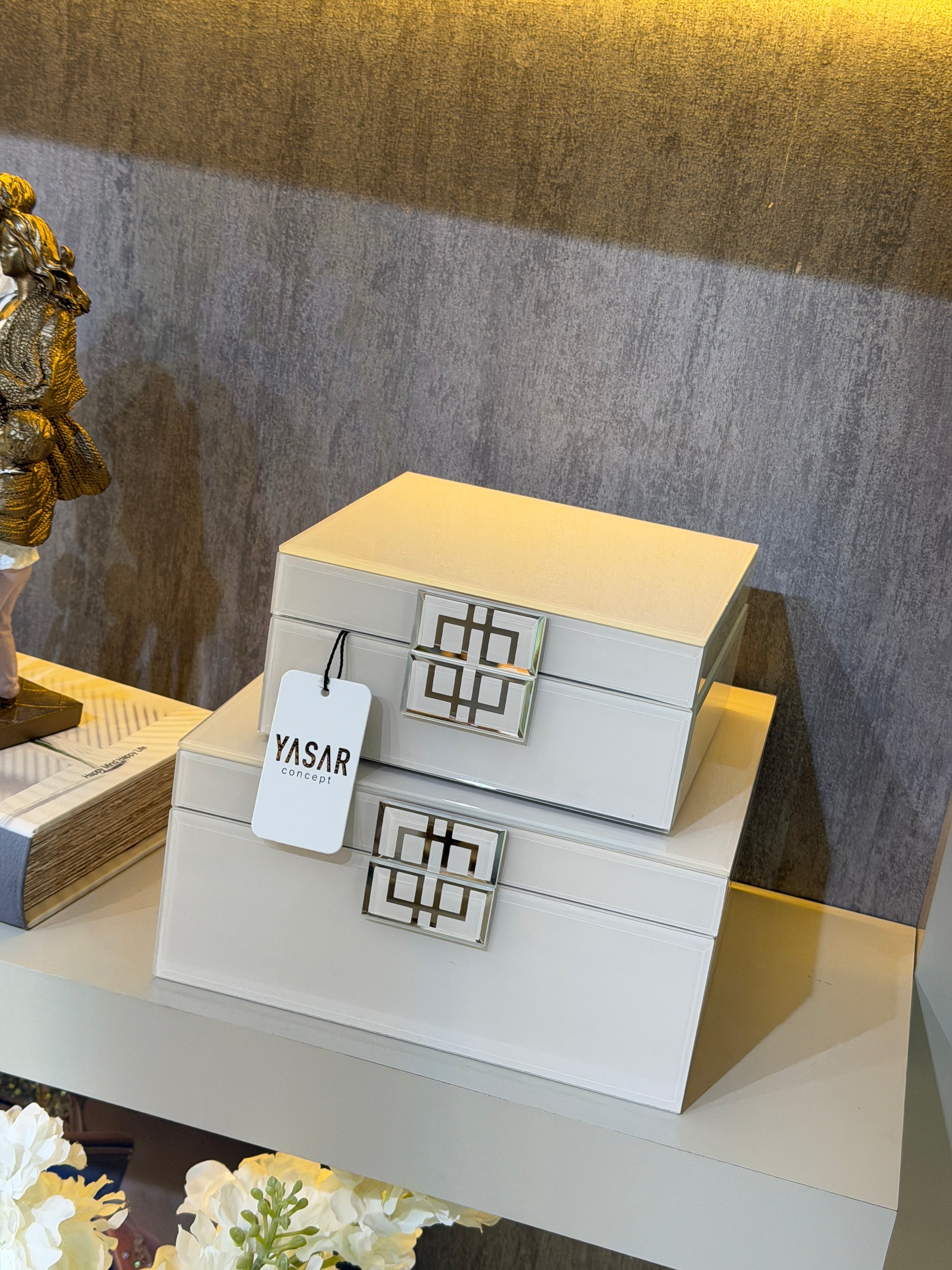 Zafielle Dekoratif Cam Kutu Set Beyaz